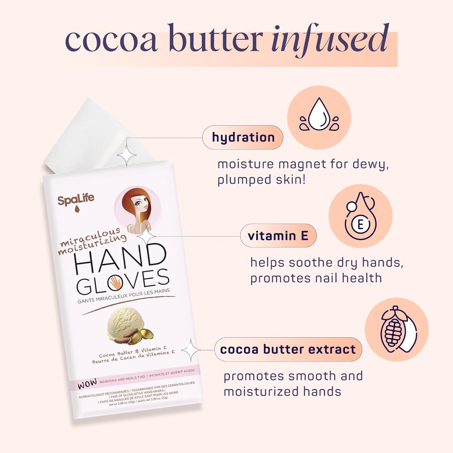 - MOISTURIZING HANDS: Give your hardworking hands the care they deserve with SpaLife Moisturizing Hand Gloves. This indulgent treatment provides your hands with the moisturizing ingredients they need, leaving them soft, supple, and ready to face the next day's challenges.