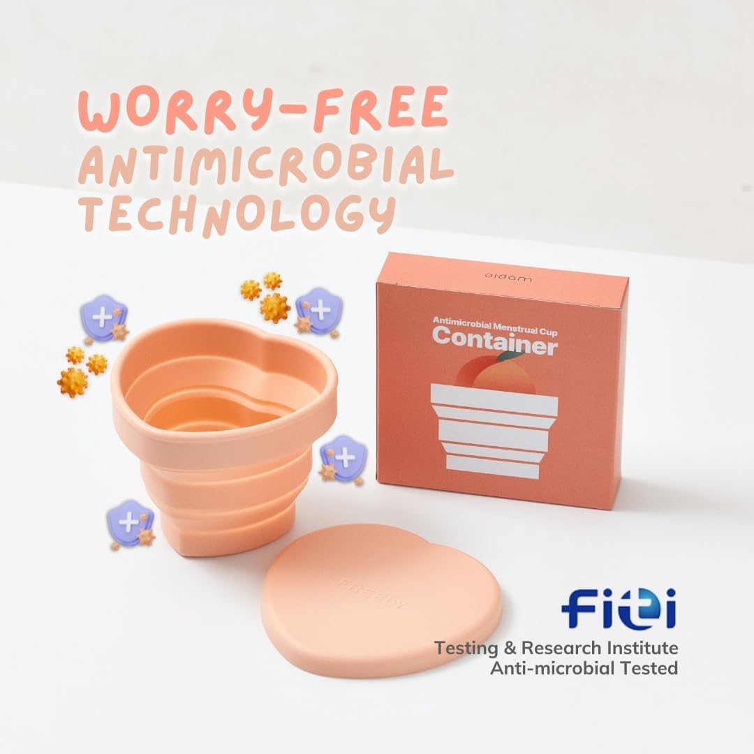 Oldam Menstrual Cup Container, Easy Sanitizing, Reusable, Foldable, Soft Peach