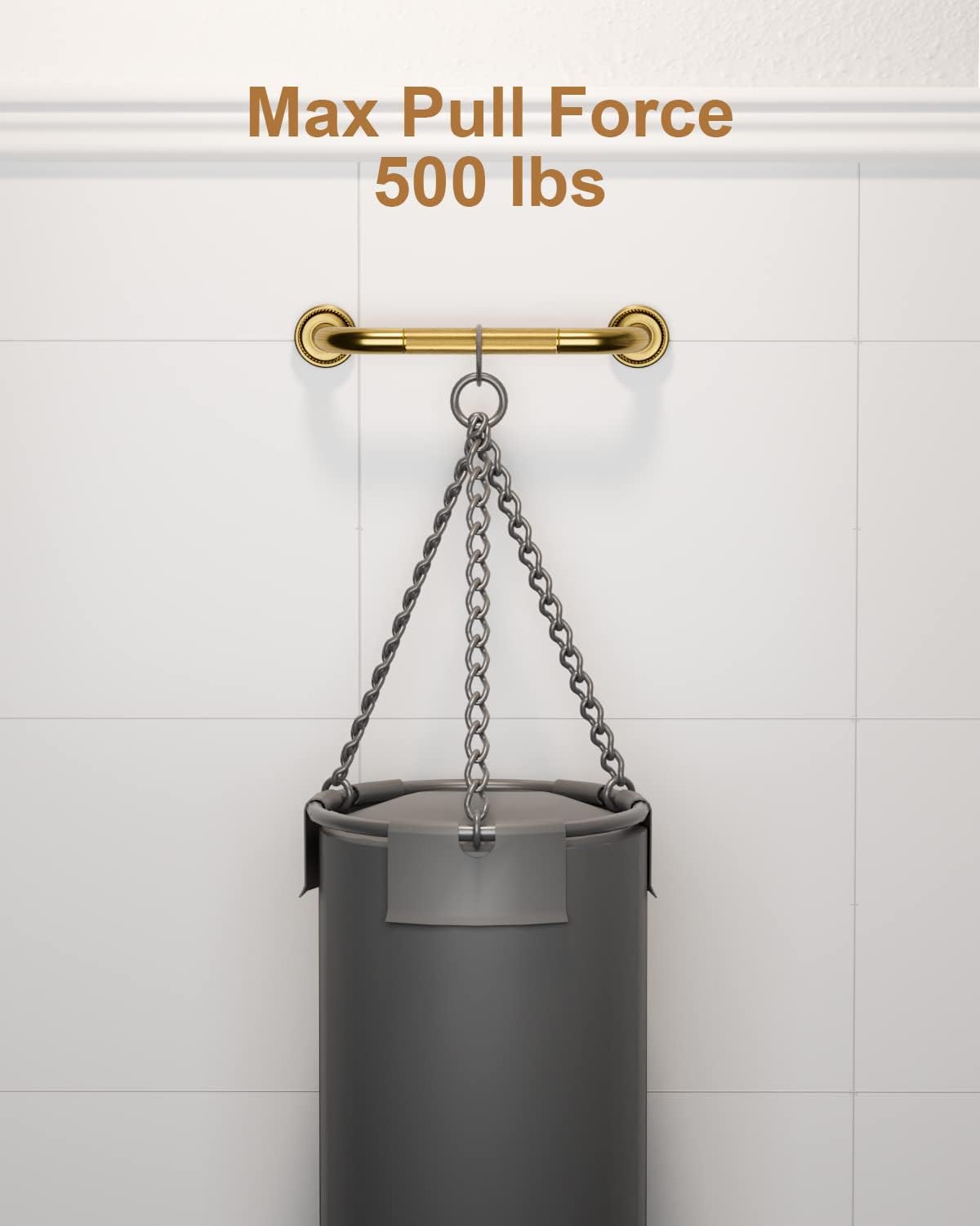 - Munzong 12 inch Bronze bathroom handicap rails (1.0 inch diameter) with golden knurled surface are able to support up to 500 lbs of pull force to provide a stable, reliable handhold; Made of anti-rust Brass for a lasting strength and quality.