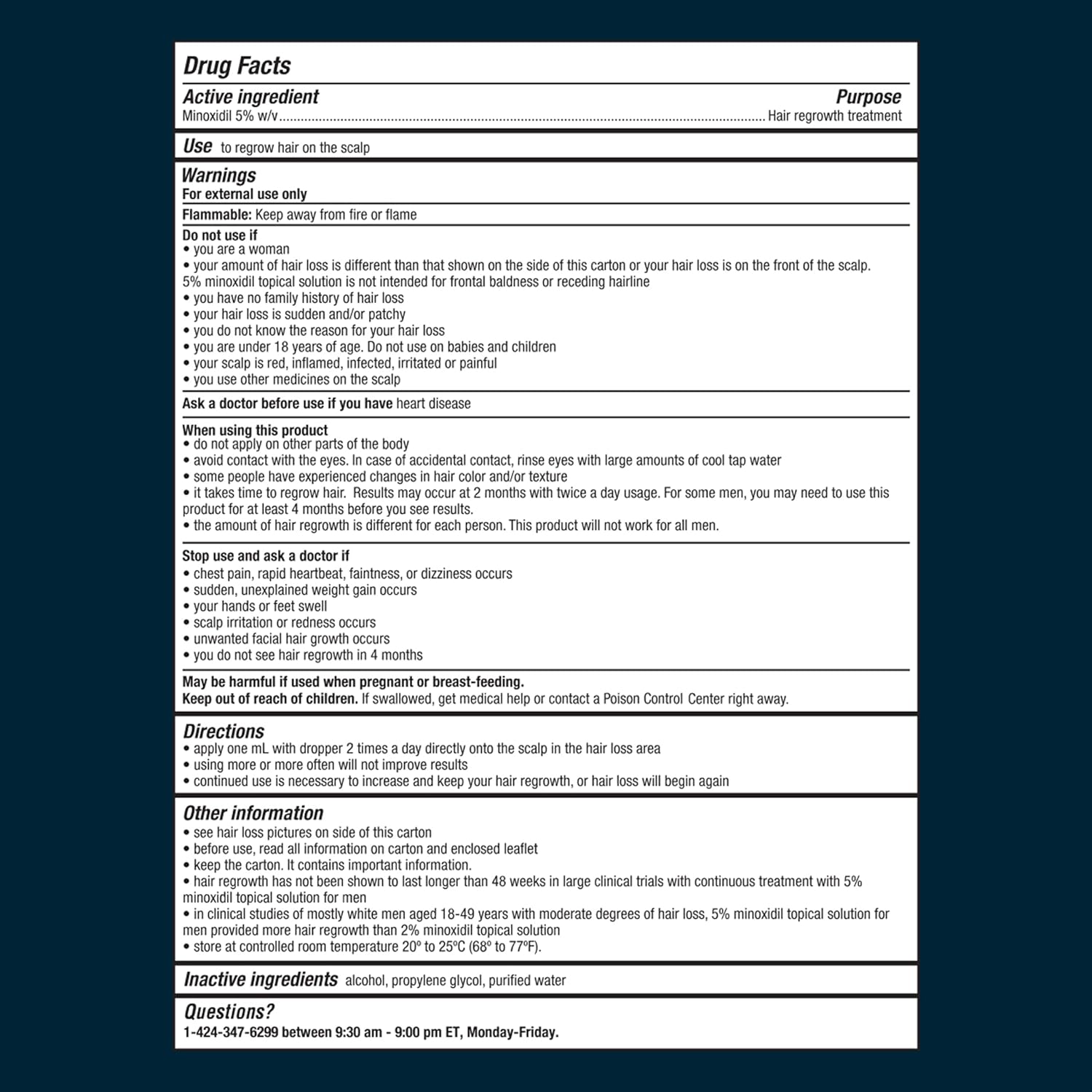 - HAIR LOSS TREATMENT: Help treat male pattern baldness and slow hair loss with our minoxidil 5% solution.