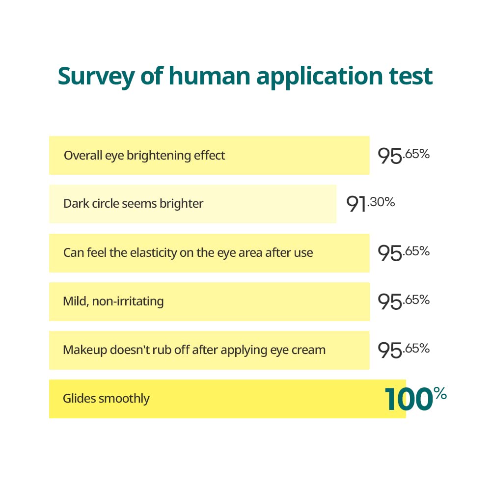 - [BYE BYE DARK CIRCLES IN 4 WEEKS] In a clinical study, 85.7% of subjects saw reduced dark circles starting at 4 weeks. Our combination of vitamin C, vitamin P, and green tangerine extract works together to clear up and brighten the skin around your eyes for noticeable results.