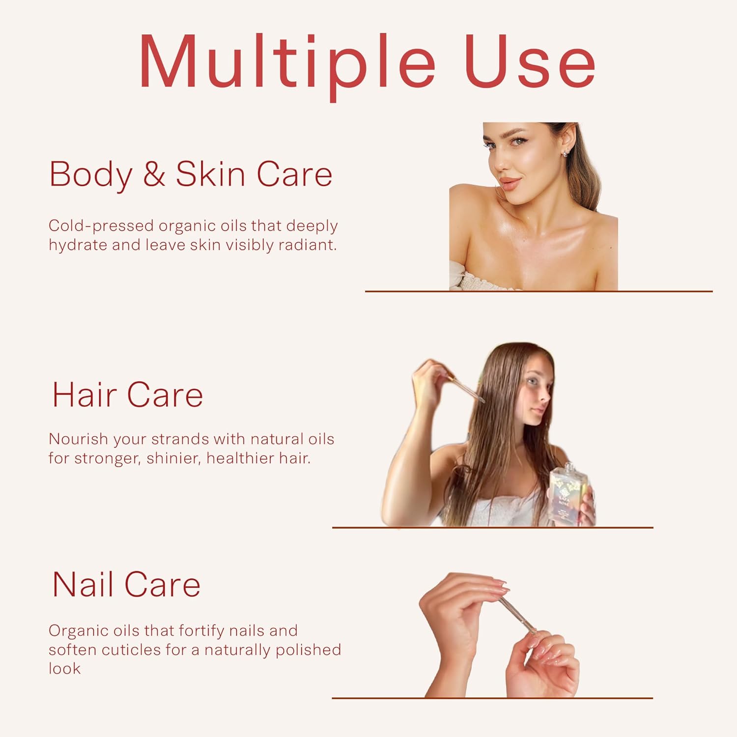 - PLANT POWER: Rosé Oil is formulated with 100% pure plant extracts and phytonutrients. We do not compromise on quality and do not use caprylic/capric triglyceride that is vegetable derived and can clog pores. Using the healthiest ingredients which are Vegan, Organic, Cruelty-Free, free of parabens, phthalates, alcohol, and other harmful chemicals and toxins. All natural, safe and effective ingredients to nourish and enrich your skin