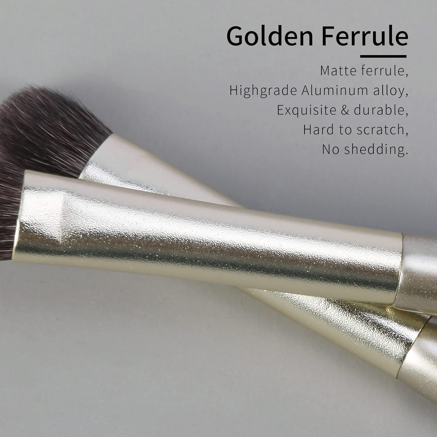 - âĽăMatte Golden Ferruleă⏠Highgrade Aluminum Alloy, Not Easy to Scratch, No Shedding, Exquisite & Durable Eye Shadow Make Brushes Real Hair, Travel Eyeshadow Brush Fit for Fast Application.