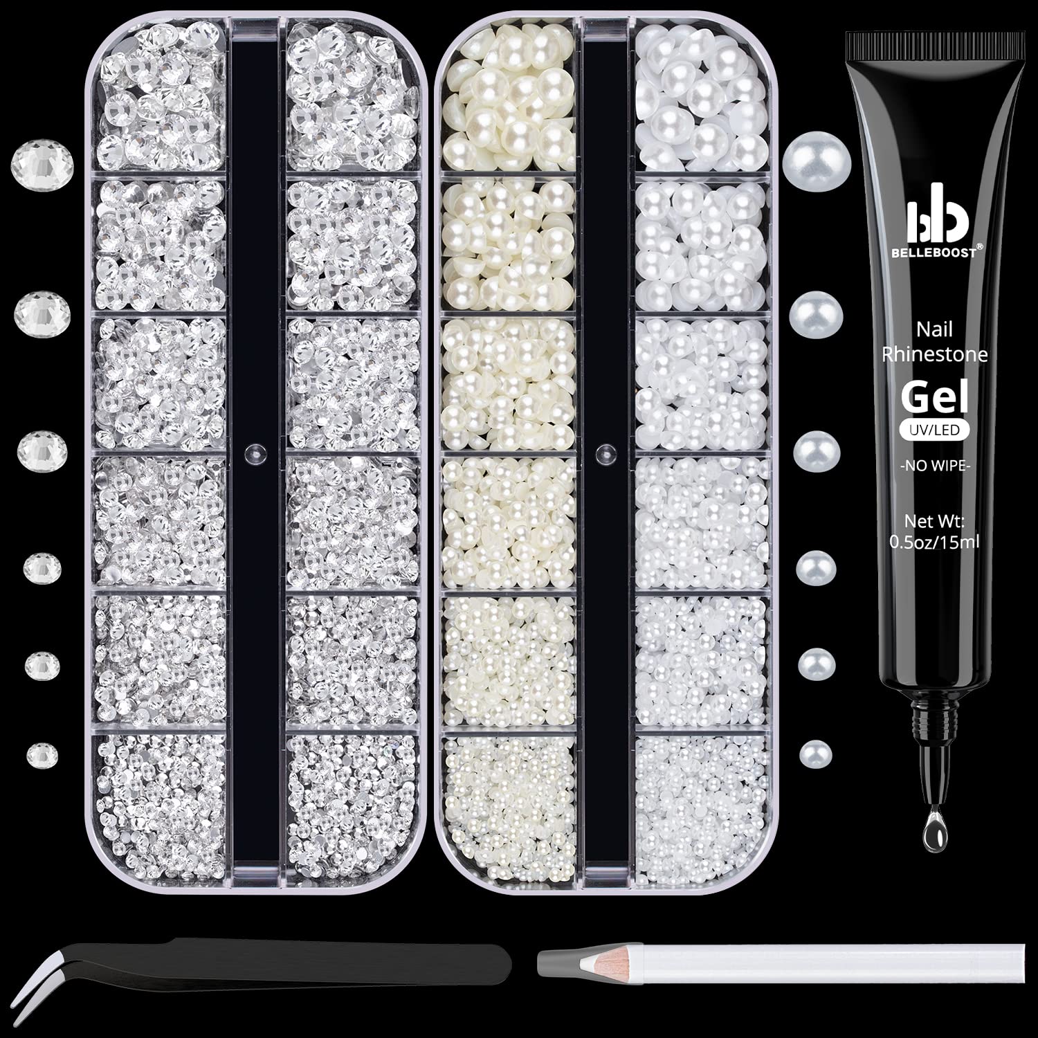 - đWHAT YOU WILL RECEIVE: This package contains 1 pc of 15ml tube design NO WIPE rhinestone gel glue; 1 box of flat back round glass crystal transparent white rhinestones; 1 box of white&beige half round pearls; 1 pc of picker pencil and 1 pc of tweezer. This set helps you decorate your nails more conveniently.