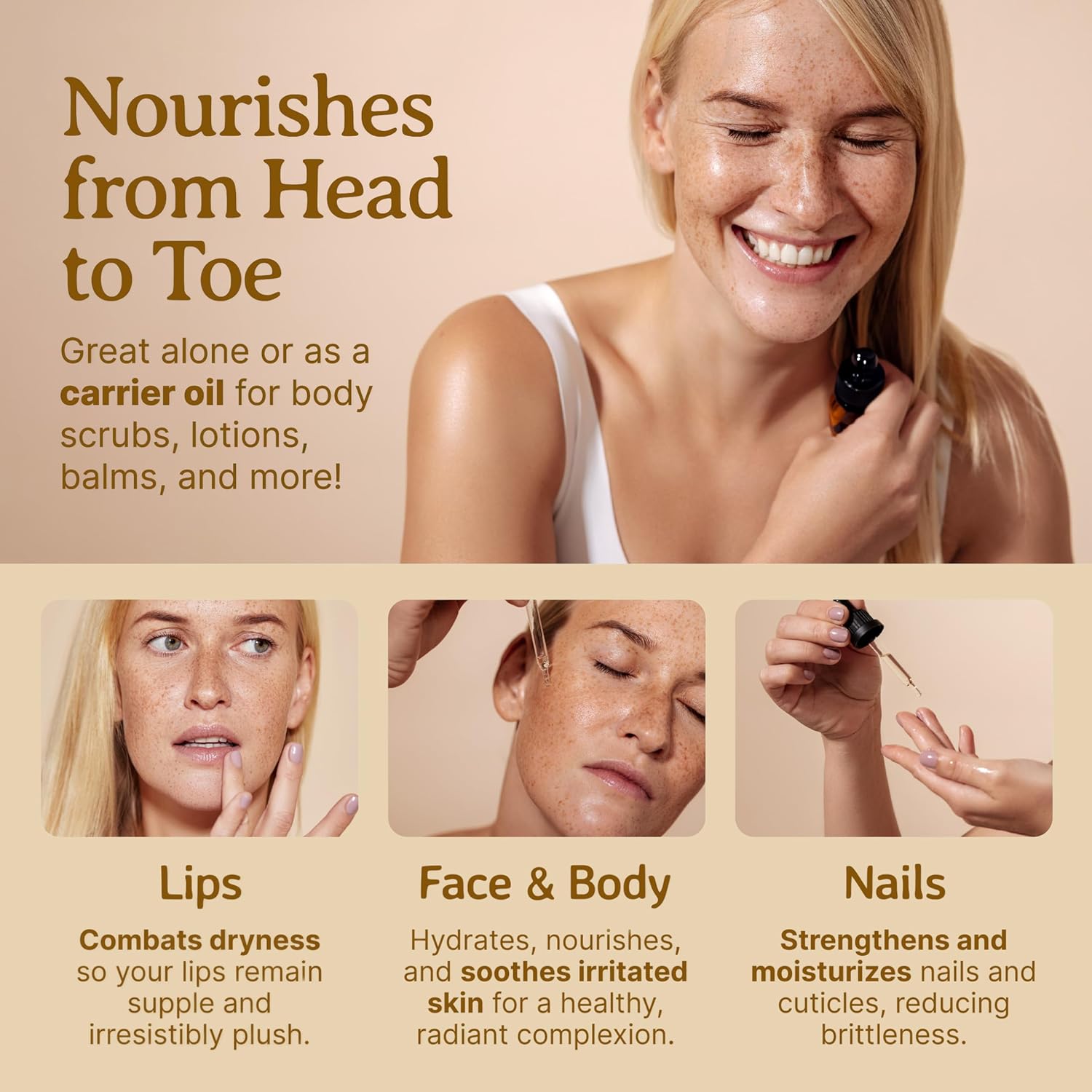 - Special Feature : 100% Money Back Guarantee. Bottled in the USA. Veteran-owned business., 100% Pure. Organic. Unrefined. Cold-pressed. Cruelty-free. Natural., Free from: parabens, hexanes, additives, preservatives., Minimizes Wrinkles. Leaves Skin Smooth and Soft. Prevents Stretch Marks. Promotes Skin Elasticity., Registered Organic with the State of California Dept of Public Health Food & Drug Branch. Reg# 112841. 100% Money Back Guarantee. Bottled in the USA. Veteran-owned business., 100% Pure. Organic. Unrefined. Cold-pressed. Cruelty-free. Natural., Free from: parabens, hexanes, additives, preservatives., Minimizes Wrinkles. Lea⌠See more