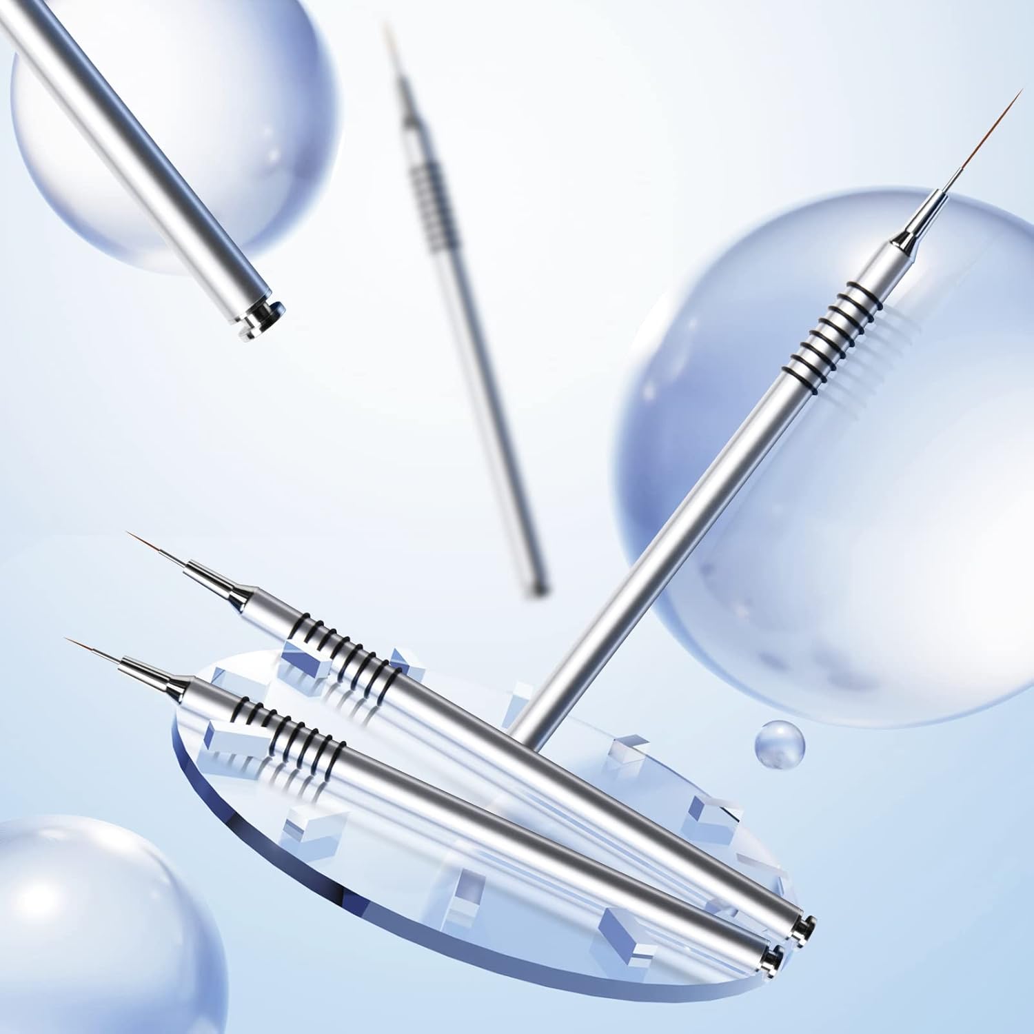 Nail Art Liner Brushes Set, 6Pcs Nail Art Design Brush Striping Thin Long Lines Dotting Drawing Pen, UV Gel Polish Painting Metal Handle Striper Brushes Size 5/7/9/11/20/25mm