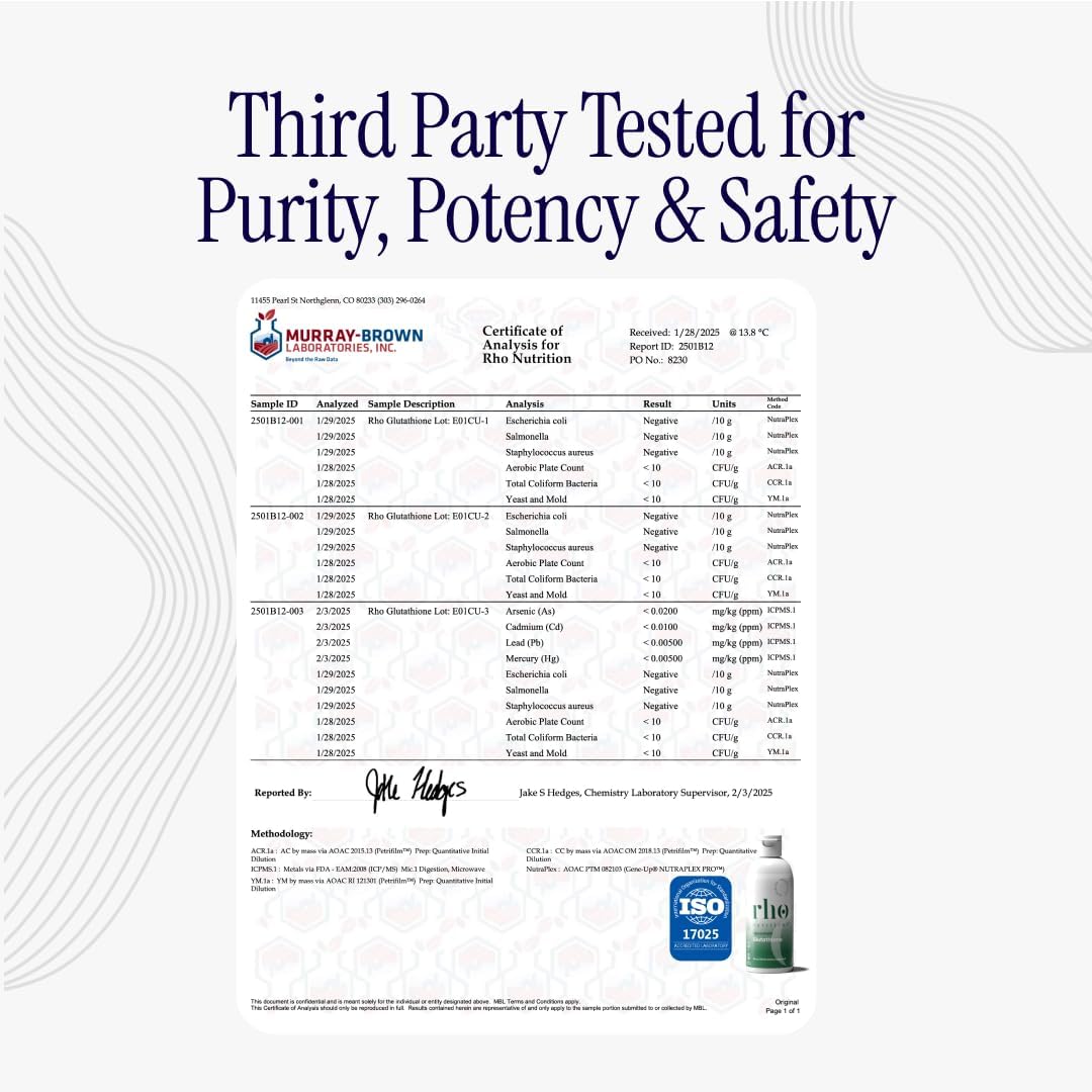 - CONVENIENT LIQUID FORM: Easily integrate Rho Liposomal Glutathione into your daily routine with 1 serving (4 mlâequivalent to slightly less than one teaspoon) per day. Enjoy the natural Lime Citrus flavor by taking it straight or mixing it into cold water, juice, smoothie, or shake. This liquid formulation offers 30 servings per bottle. It's sugar free, Keto, non-GMO, gluten, dairy & soy-free and vegan. Contains no fillers, binders, or artificial coloring. Manufactured in the USA in a cGMP facility and third-party tested.