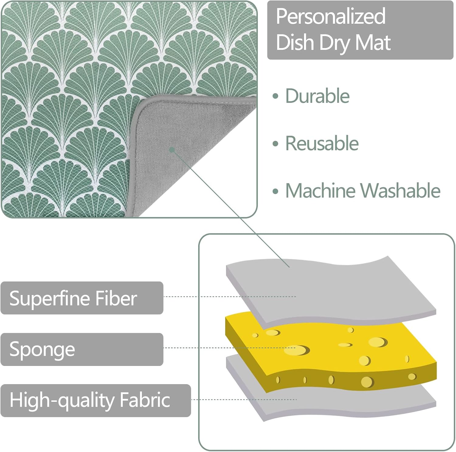 - đ CREATIVITY AND STRONG ABSORPTION: can't stand wet dishes and dry mats? Buy one of our dish mat drying kitchen mat. microfiber dish drying mat, the surface can quickly absorb water 2-4 times its own weight. Help your crockery and tableware dry faster and more hygienically, and keep the table completely dry