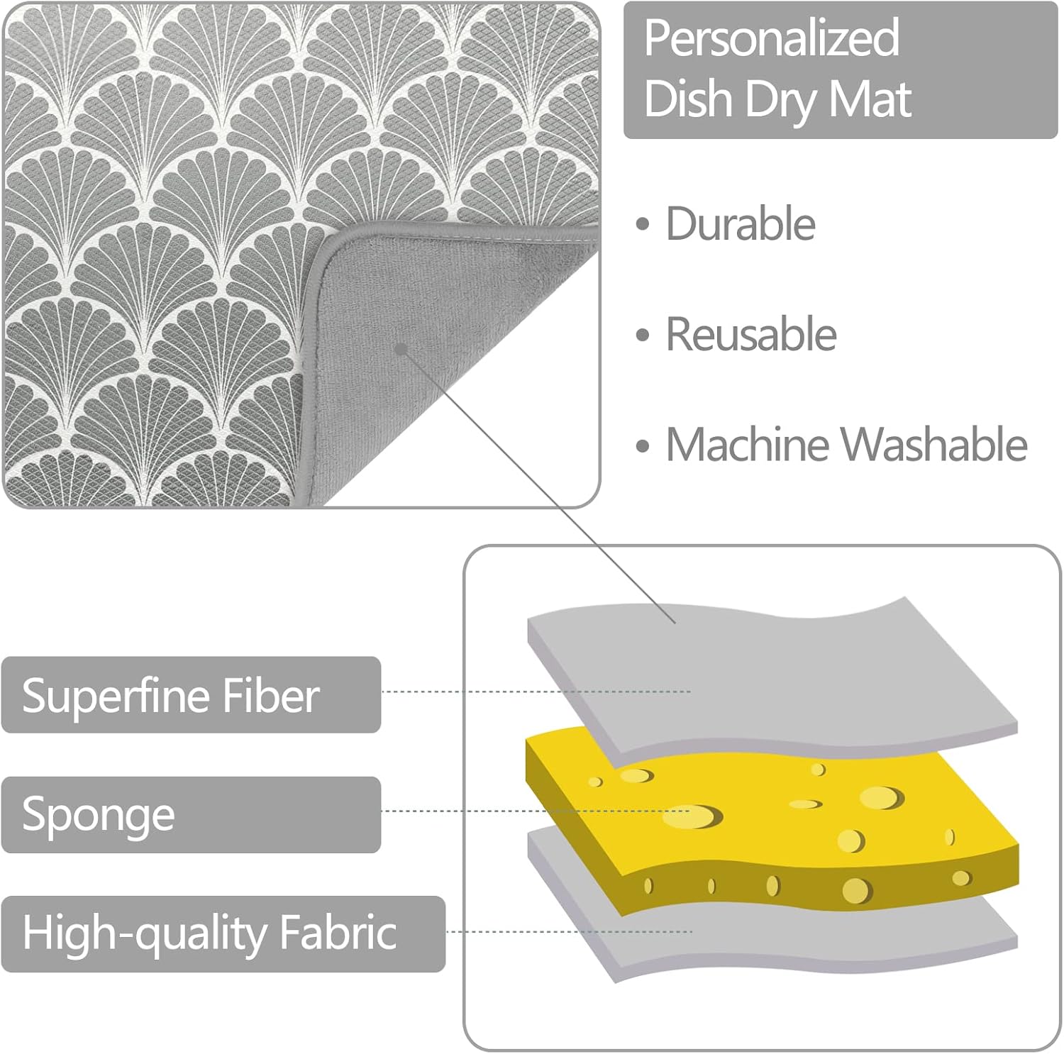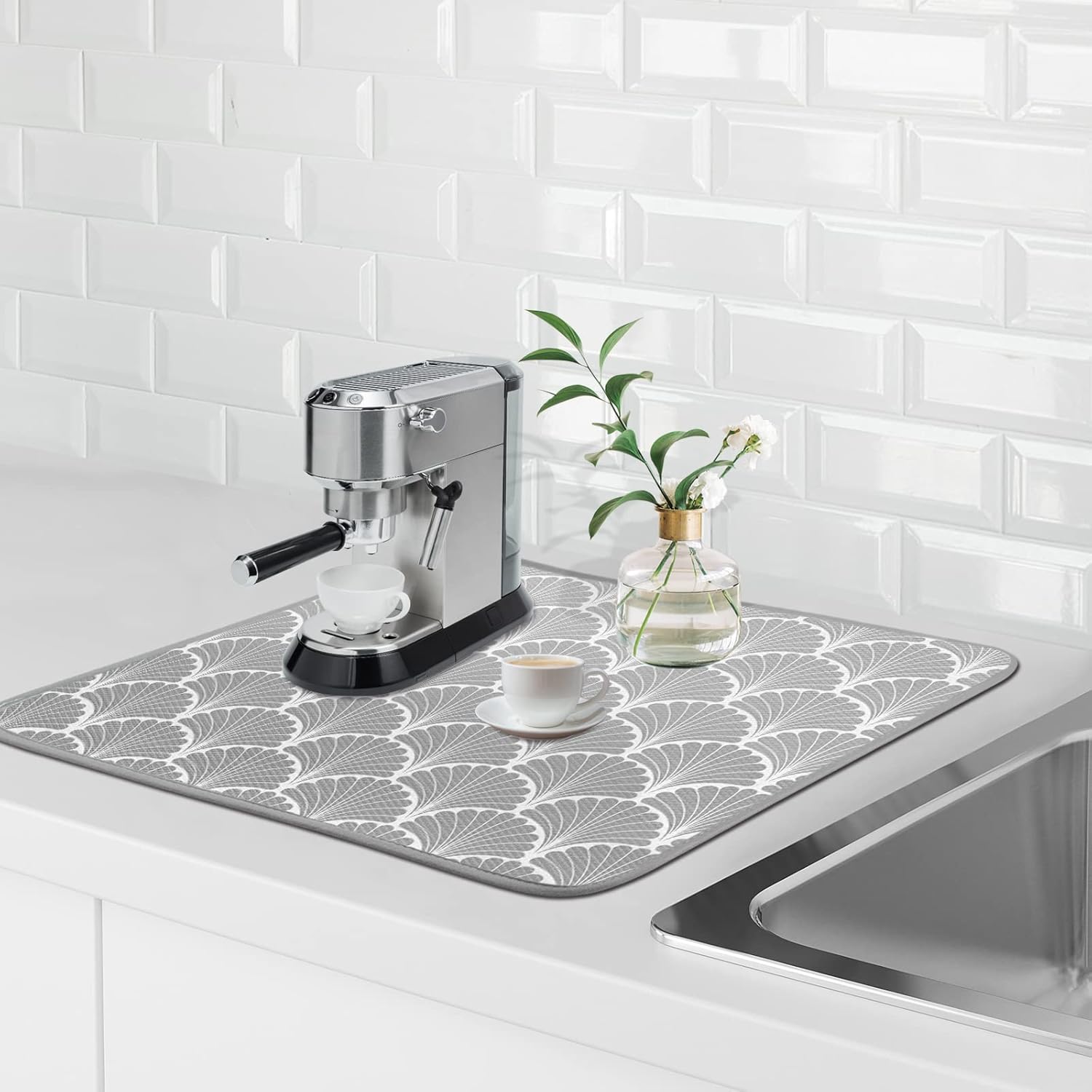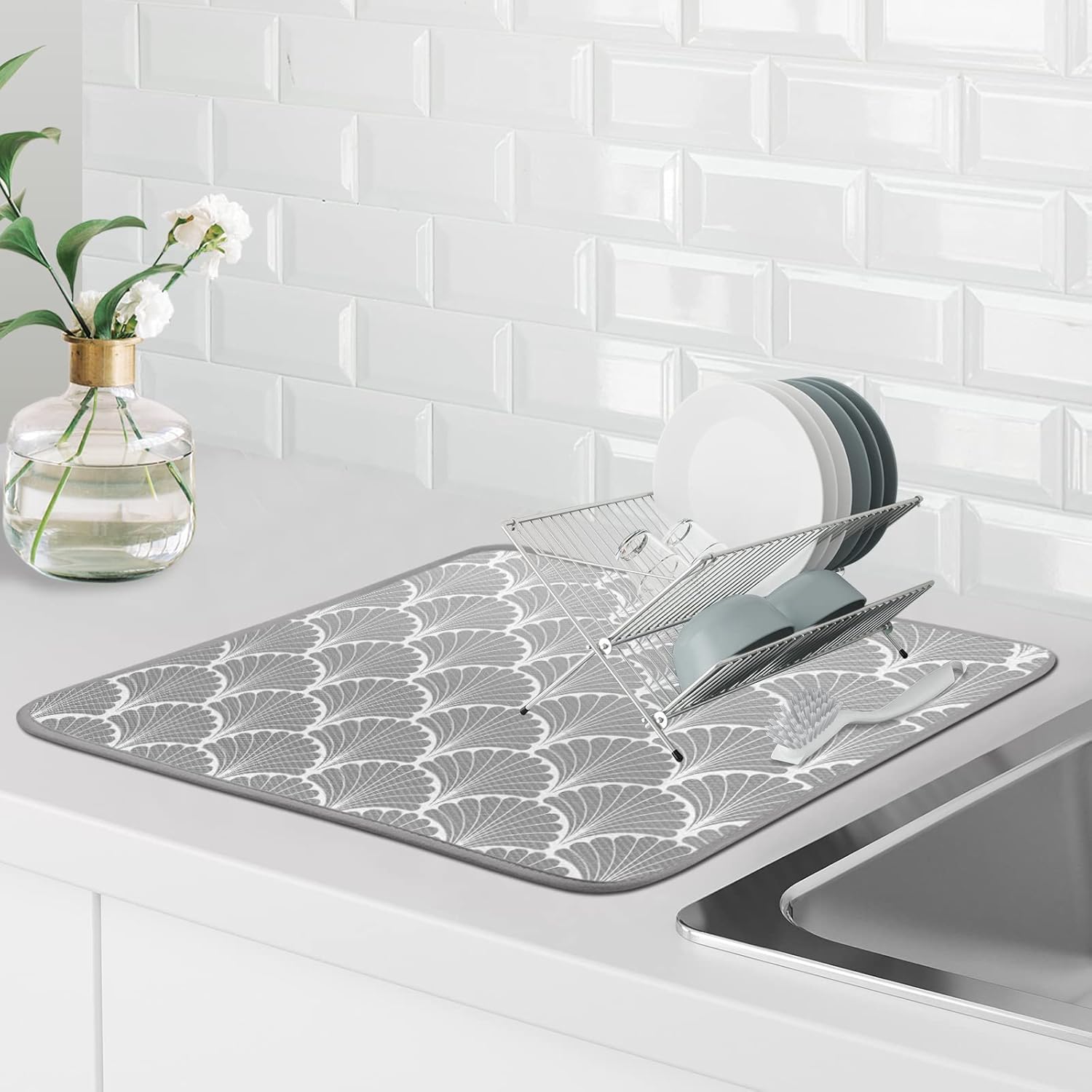 SHIYUE Dish Drying Mat for Kitchen Counter Super Absorbent Spring Kitchen Decor Microfiber Drying Matainers Rack Fast Pad Dish Drainer Mats(Grey Shell Geometric,18''x24'')