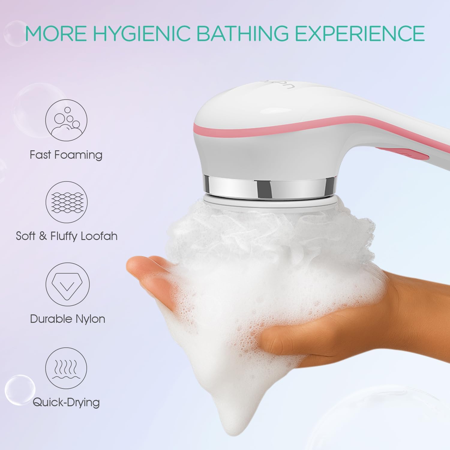 - IPX6 waterproof design - The machine uses rubberized silicone to ensure waterproof , allows conveniently using in shower. Ergonomically design, easy to grab. The long handle design allows you to easily clean hard-to-reach places. Non-slip design prevents it from falling off.