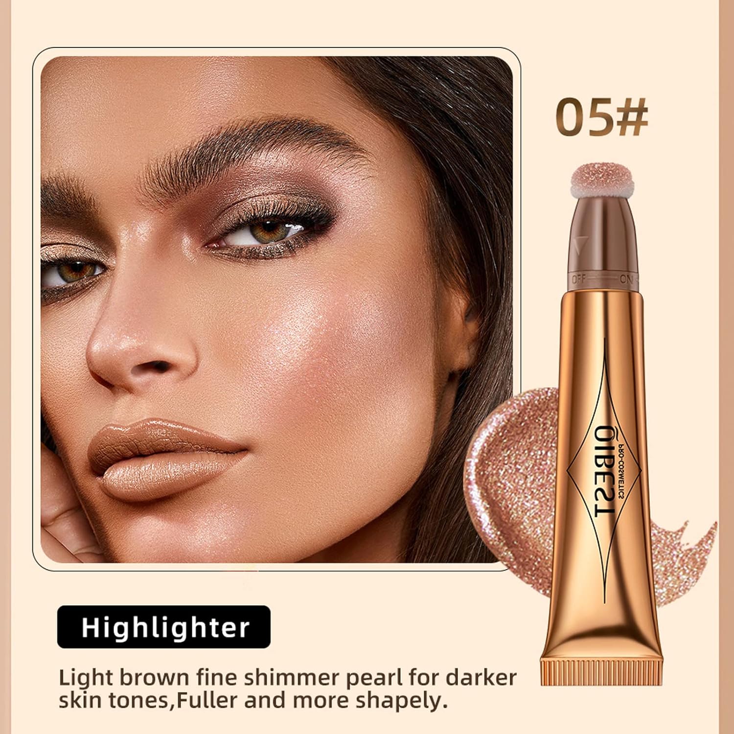 - Liquid Highlighter Makeup Stick --- Highlighter wand creates a subtle glow, enhances natural skin tone and cover skin imperfections. Highlighter gloss wand create three-dimensional makeup,after finishing bottom makeup, use shimmer wand on the "T" parts/dark heavy parts, in order to reach natural fusion effect with skin. The shimmer wand stick recommended using on bridge of the nose, forehead, brow lines, chin,vest line, clavicle,and lip line
