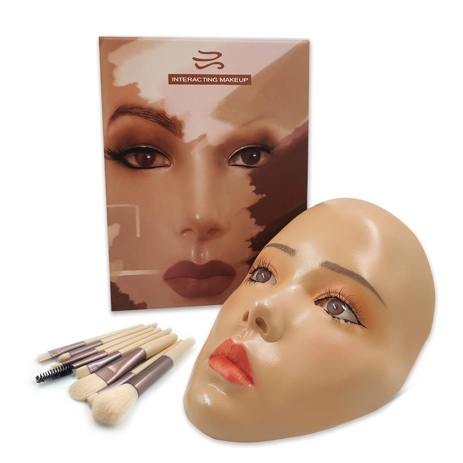 3D Makeup Practice Face,Reusable Makeup Mannequin Face with Makeup Brushes Set,Silicone Full Face Practice Eyelash Eye Shadow,for Emerging Makeup Artist,for Girl's Gift
