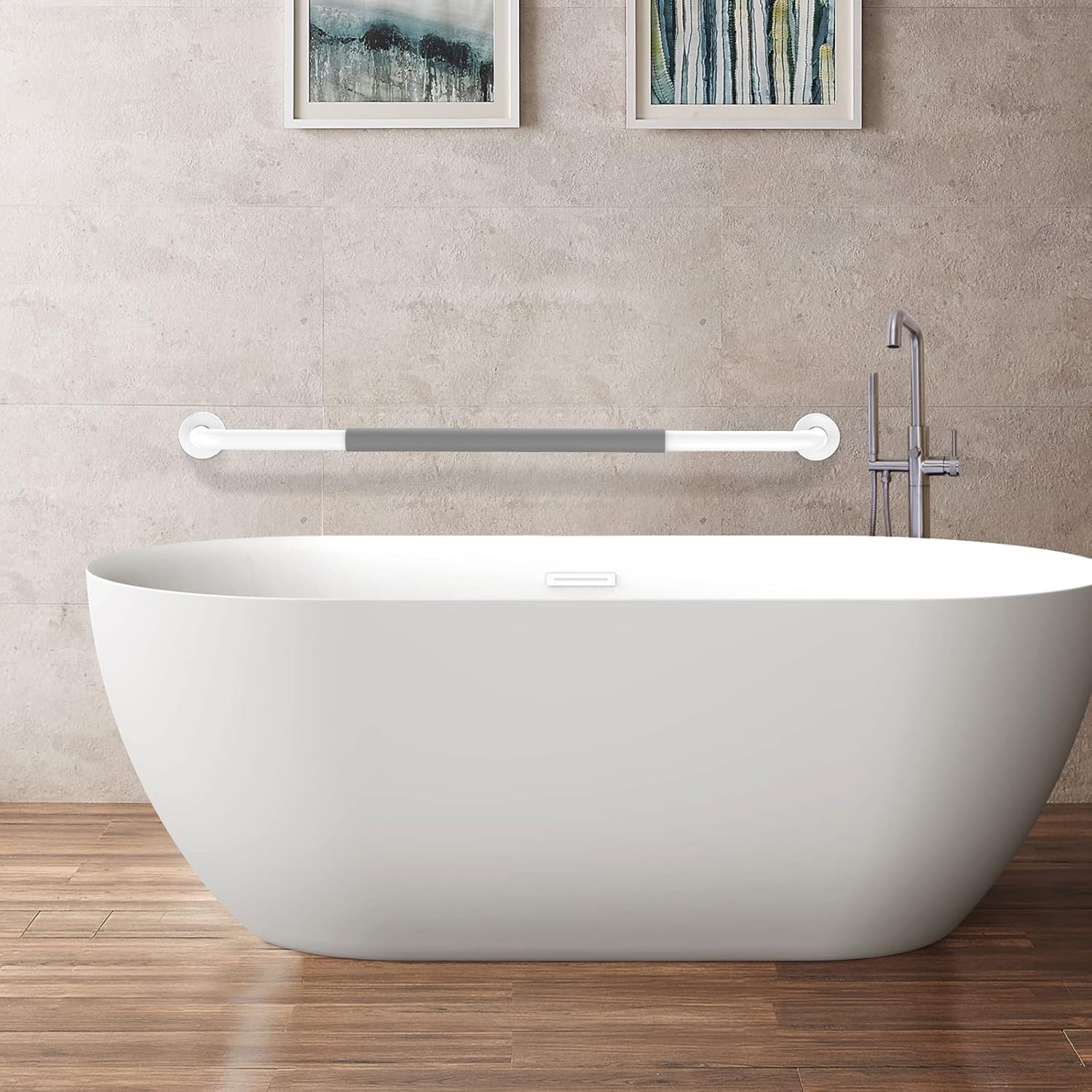 32 Inch Anti Slip Shower Grab Bar, Munzong White Stainless Steel Bathroom Grab Bar w/Gray Rubber Grip, Bathroom Balance Bar,Safety Handrail Support,Handicap Elderly Senior Assist Bath Handle