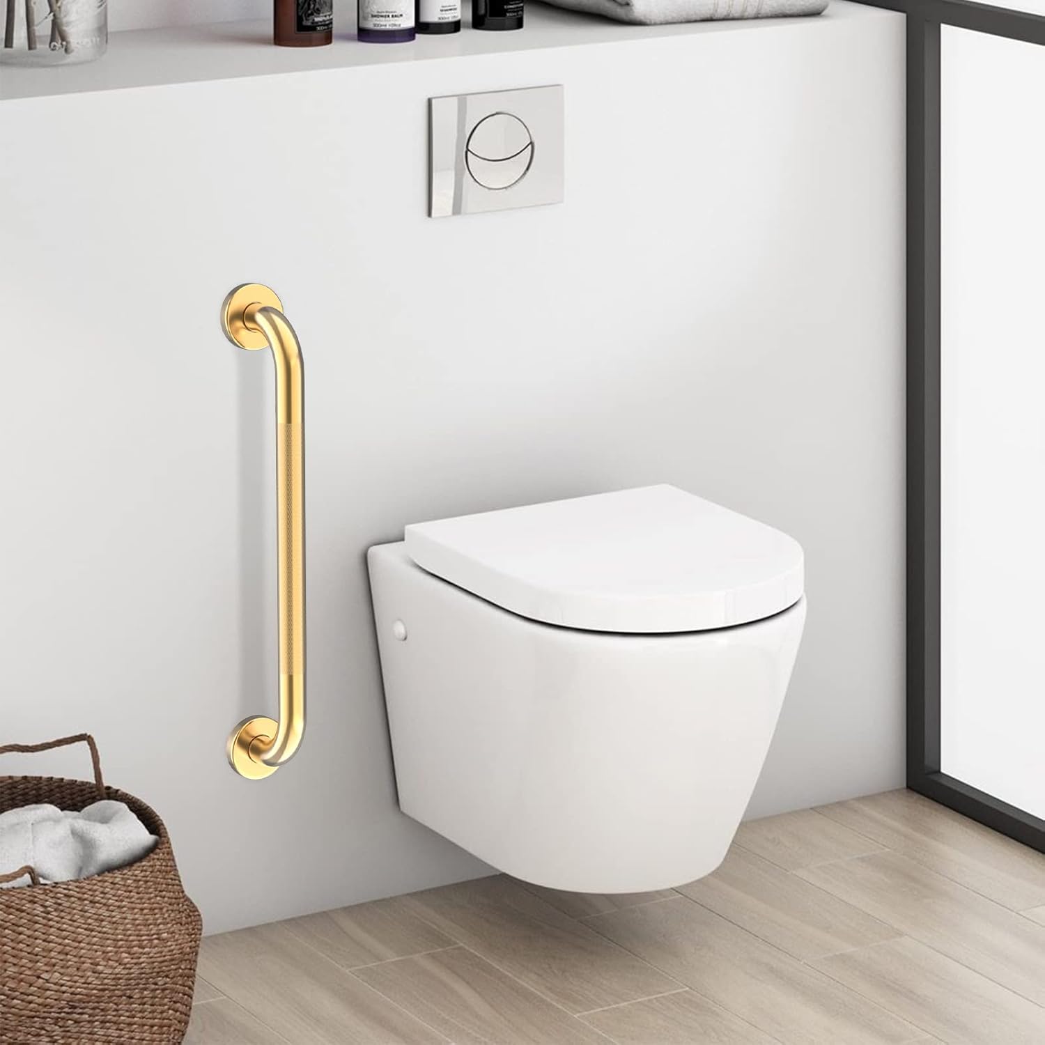- Use 24 inch anti slip Oil Rubbed gold knurled safety grab bars in the bathroom, kitchen, along stairways, or in the laundry room for additional fall prevention, especially for the handicap, elderly, pregnant women, and children. Not only apply to use as bath shower grab bar, but also can hold clothing,etc.