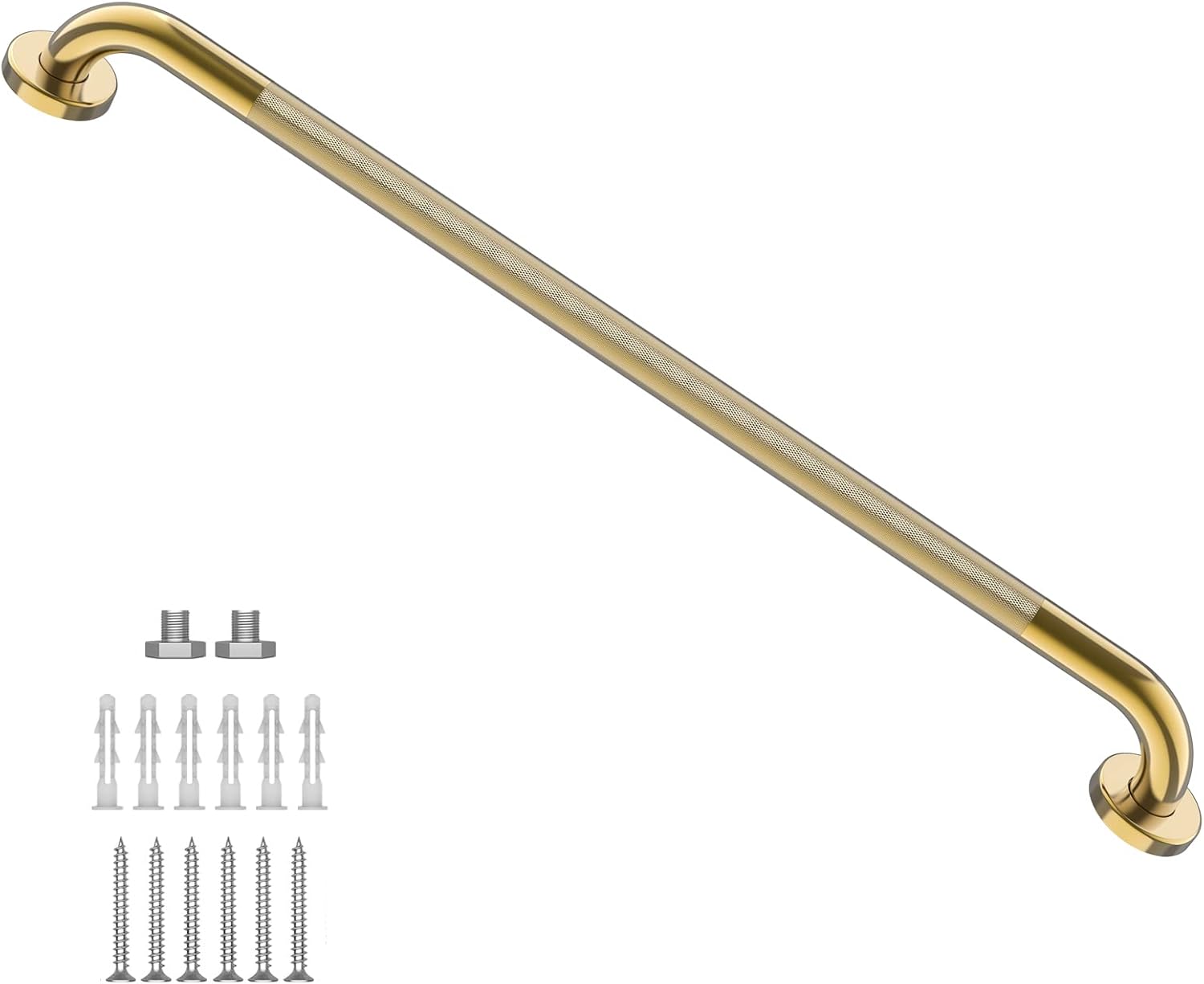 - Durable&Stay Safe in the Shower: Zepolu 36 inch safety shower bar is built to last. It is resistant to rust, corrosion, and tarnish, ensuring a long-lasting and dependable grip. Gold shower grab bar 36 inch provides sturdy balance support for seniors and those with mobility issues. The anti-slip textured knurled grip helps prevent falls and slips in the bathroom.