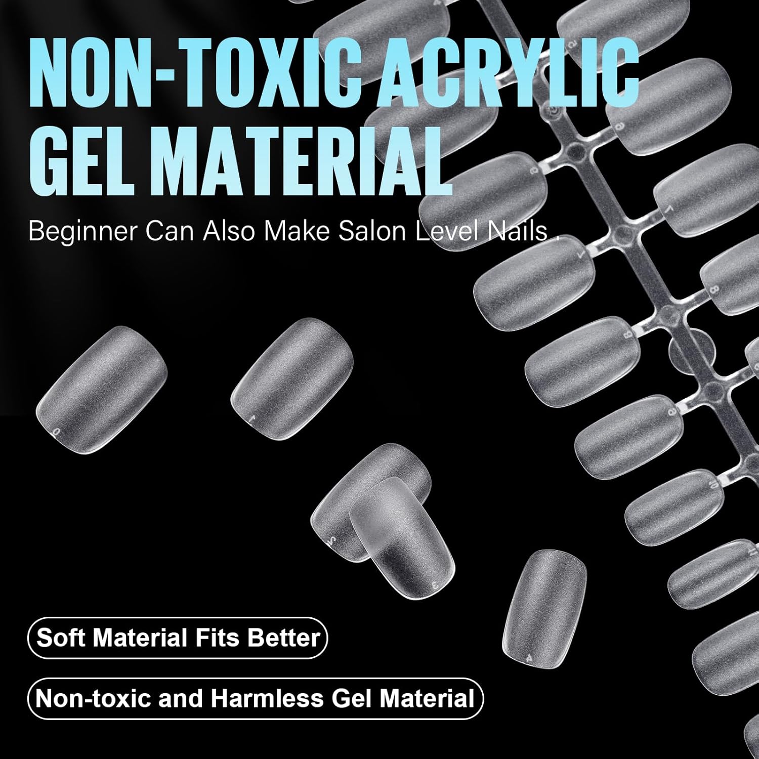 - 【Pre Buffed Nail Tips】The upgraded pre-buffed nail tips give you the privilege of "no file, no base coat". Protect your nail beds while saving time. Double-sided matte acrylic nails have stronger adhesion and can be pasted more firmly.