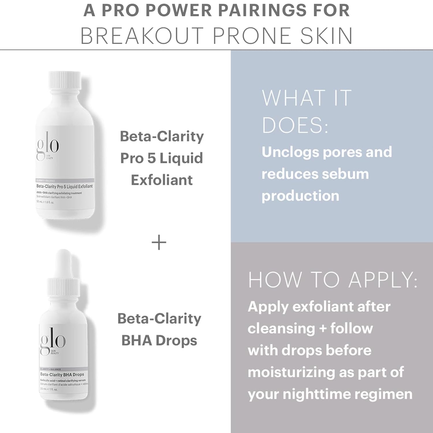 Glo Skin Beauty Clarify + Balance Skincare Set for Breakout Prone Skin - Mini Purifying Gel Cleanser, Mini Oil Free Moisturizer, Mini Beta-Clarity BHA Drops, Mini Beta-Clarity Pro 5 Liquid Exfoliant