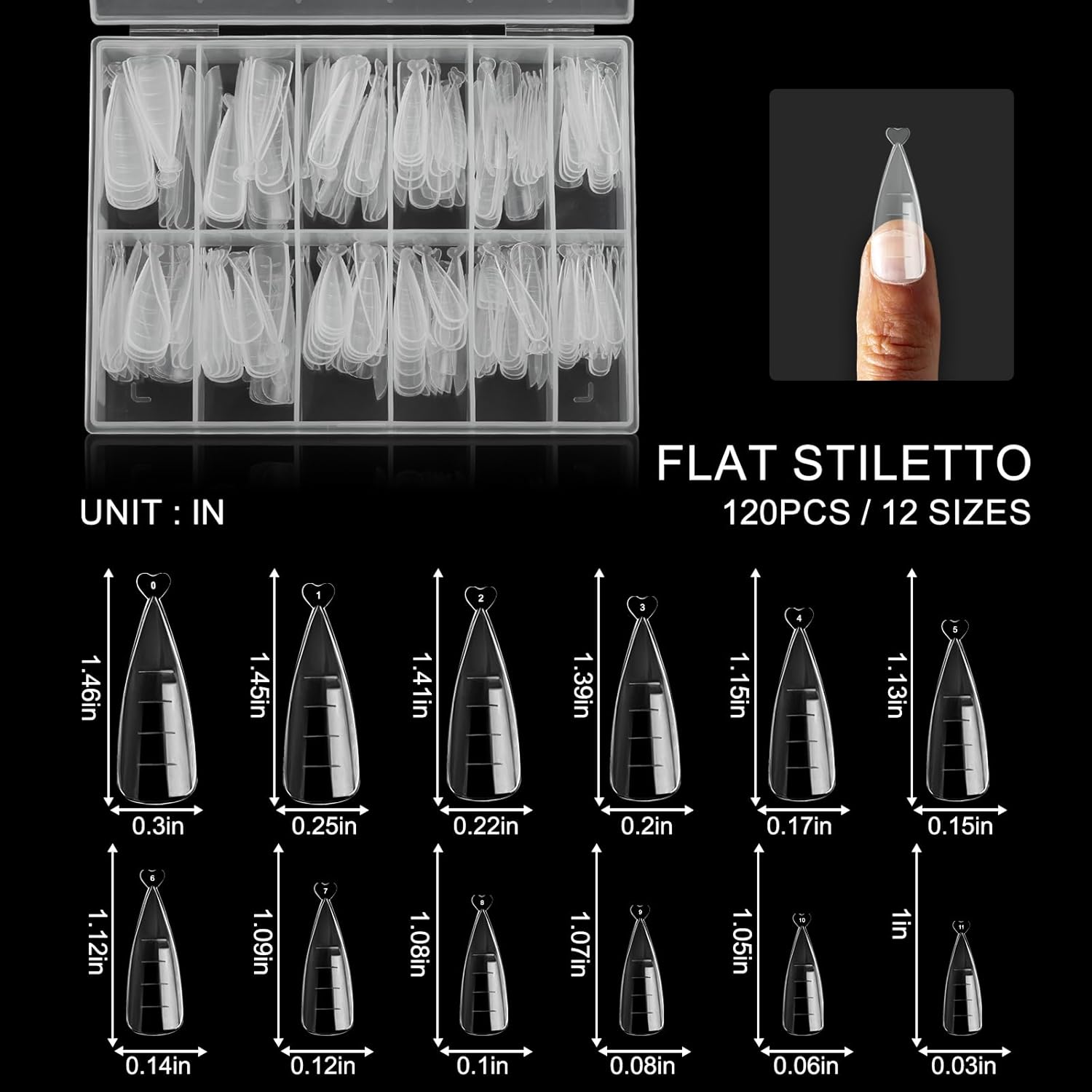 - Transparent Packaging: Dual nail extension molds come in a transparent box that makes it easy to carry and find the size you want quickly and efficiently. With 120 pieces included, you'll have plenty of nail forms for polygel to work with for all your nail art needs.