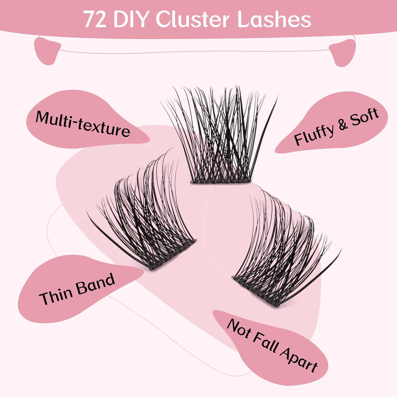 - 72 Pcs Cluster Lashes: The Cluster lashes are avaiable now! Different from other brands, PRO LashBeauty can provide 72 pcs in one tray! Mix Length from 8mm to 16mm. You can get more lashes and use more times.