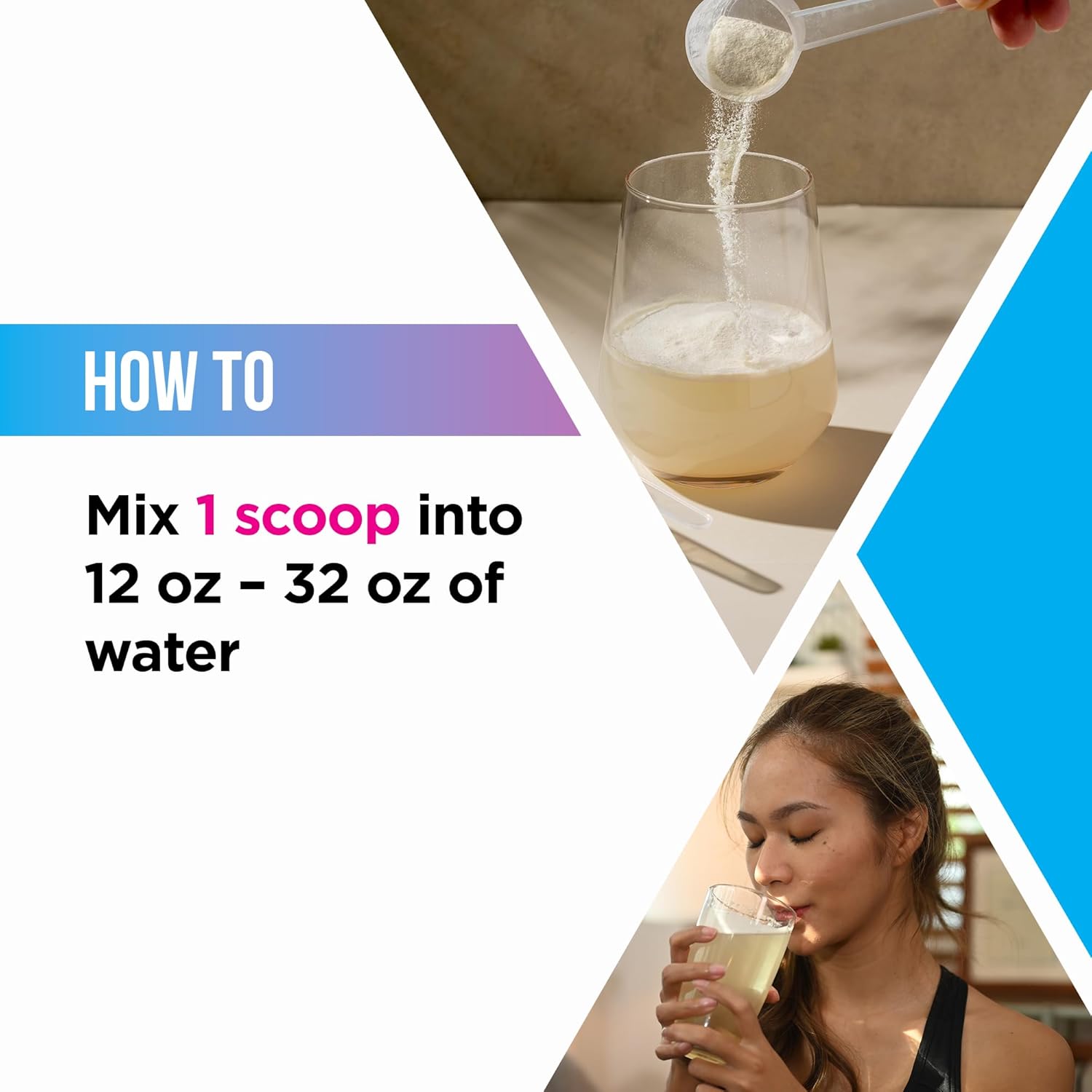 - SIMPLE TO USE, EASY TO MIX: Just mix one scoop into 12â32 oz of water or your favorite beverage. Designed for flexibility, this powder fits seamlessly into your hydration routine whether you're at home, on the go, or prepping for a long day.