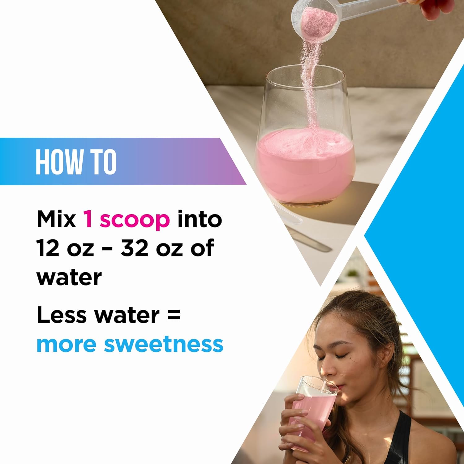 - SIMPLE TO USE, EASY TO MIX: Just mix one scoop into 12â32 oz of water or your favorite beverage. Designed for flexibility, this powder fits seamlessly into your hydration routine whether you're at home, on the go, or prepping for a long day.
