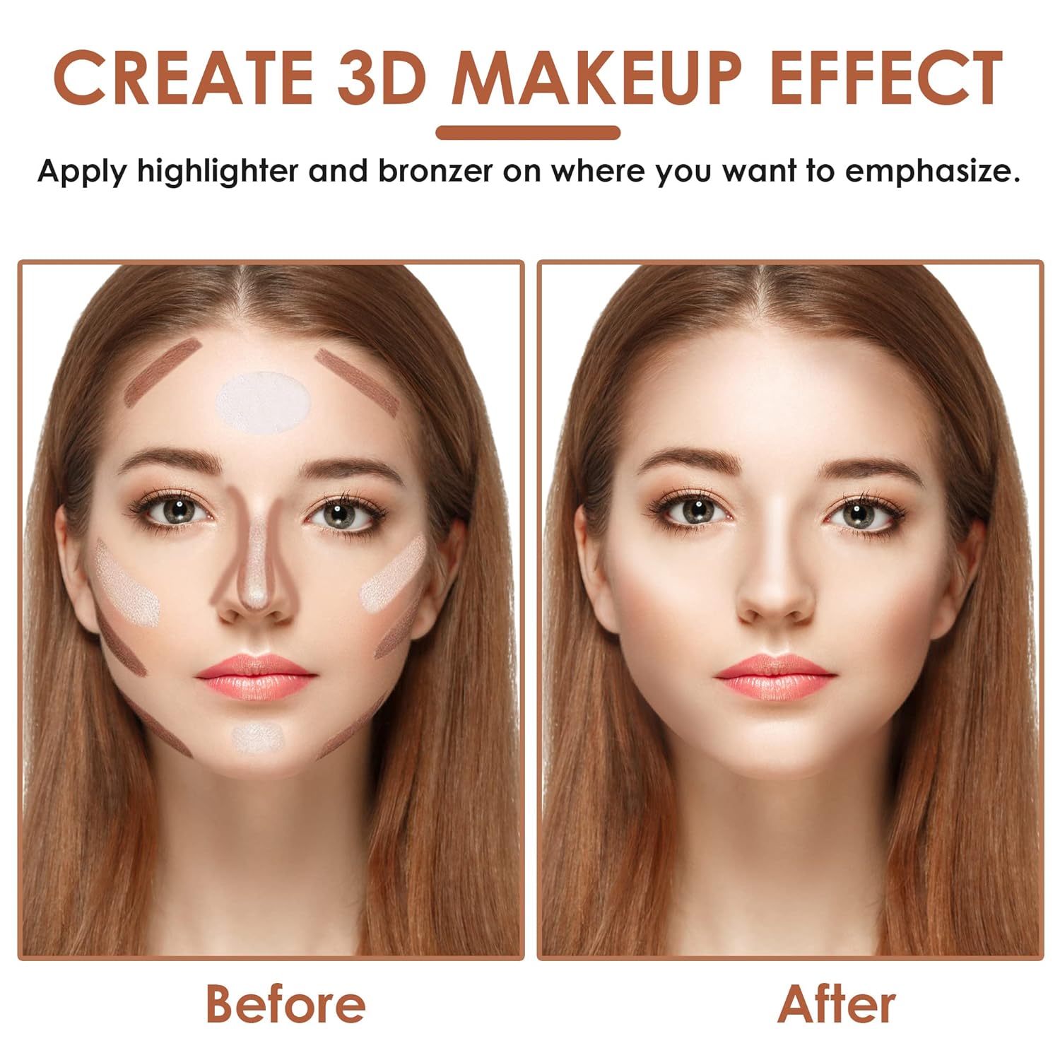 - 【𝑾𝒂𝒕𝒆𝒓𝒑𝒓𝒐𝒐𝒇 & 𝑳𝒐𝒏𝒈 𝑳𝒂𝒔𝒕𝒊𝒏𝒈】Our cream highlighter & bronzer stick contour features a long-lasting, non-greasy, waterproof formula that won't crease, or clog pores, without smudging or fading through sweat. Highlighter makeup stick gives you a nice feeling all day long.