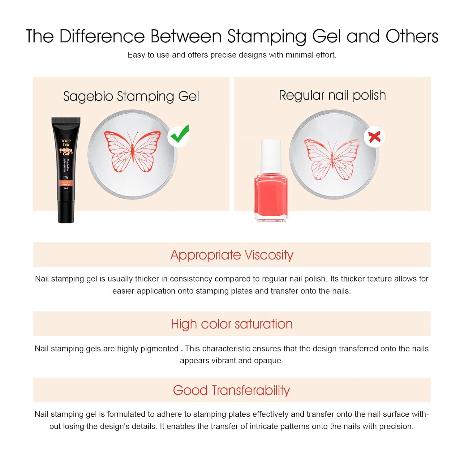 - 【You Will Get】8 Colors of stamping polish gels. Capacity of stamp gels- 8ml/0.27fl.oz. This stamping gel polish will enhance the performance of our stamping kit and allow you to fully enjoy the beautiful designs on the template plates.
