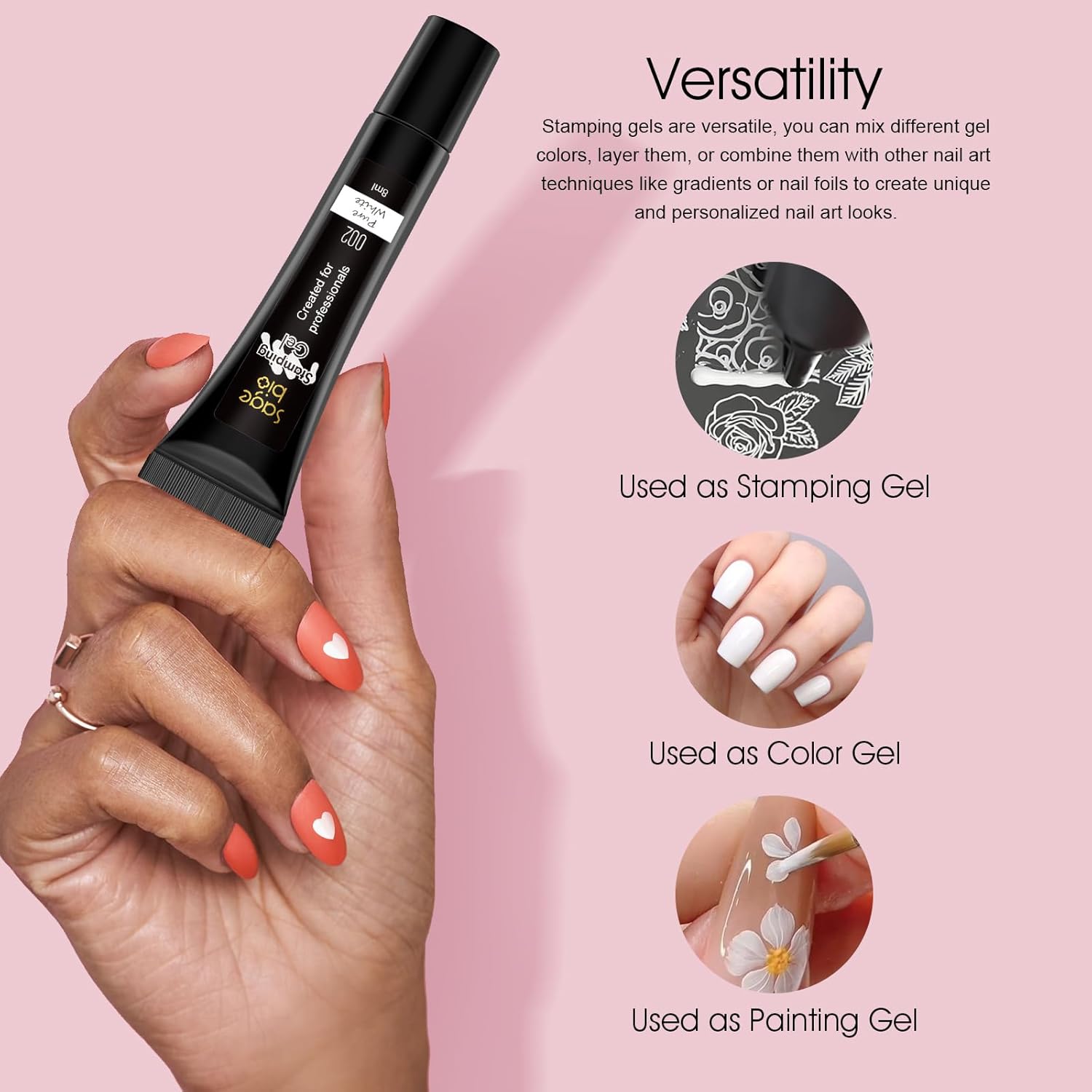 8 Colors Nail Stamping Polish Gels +5Pcs Stamp Print Templates+A set of Stamper with Scraper, Stamping Nail Polish Art Set Manicure Gift Collection