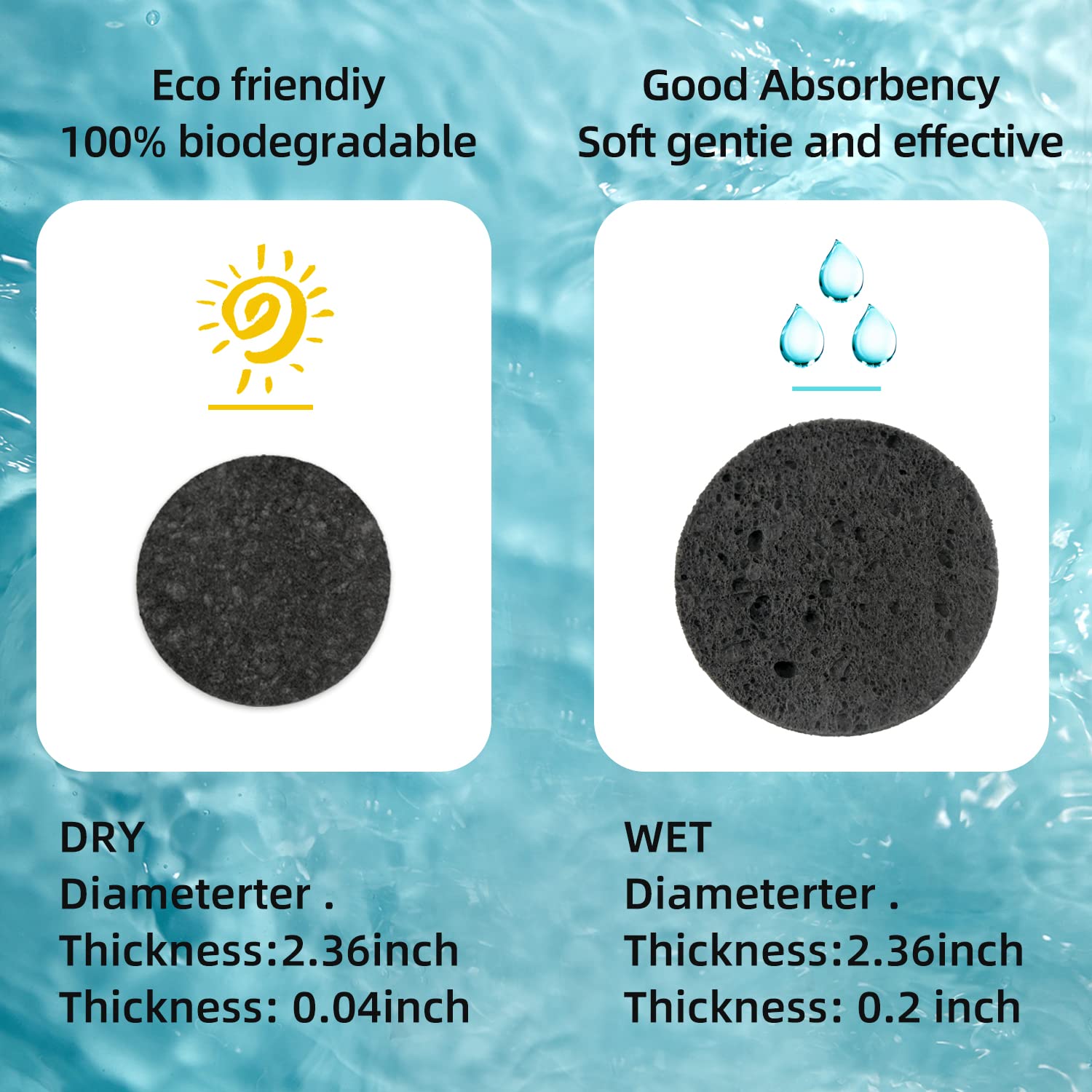 50-Count Facial Sponges Compressed Natural Cellulose Sponge Round Shape Face Sponge for Face Cleansing Exfoliating and Makeup Removal, Black