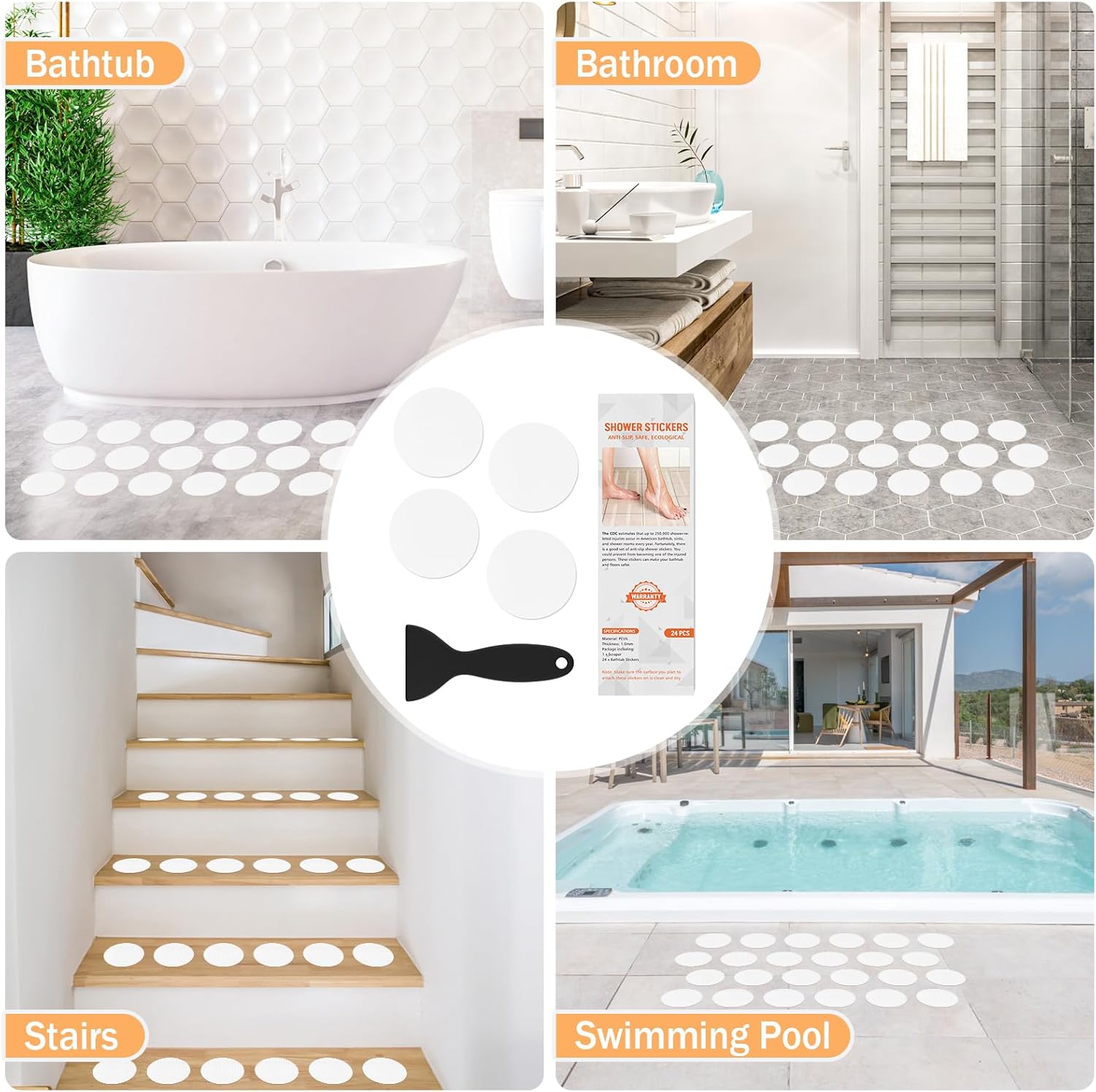 - 【Package】Package Included: 24 PCS safety anti-slip bathtub stickers and a black scraper.