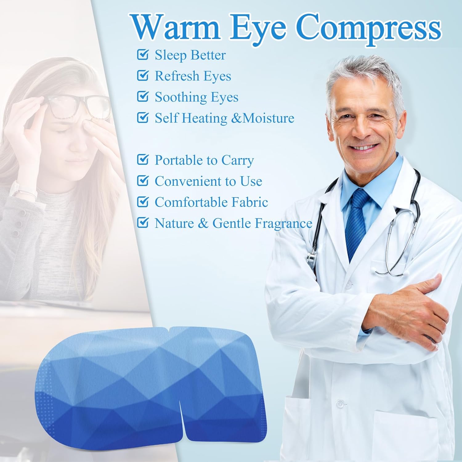 - Moist Heating Eye Mask: Open the package, the steam eye mask will auto heat and releases moisture to keep warm and refresh your eyes, The warm compress heated eye mask helps to promoting better sleep quality.