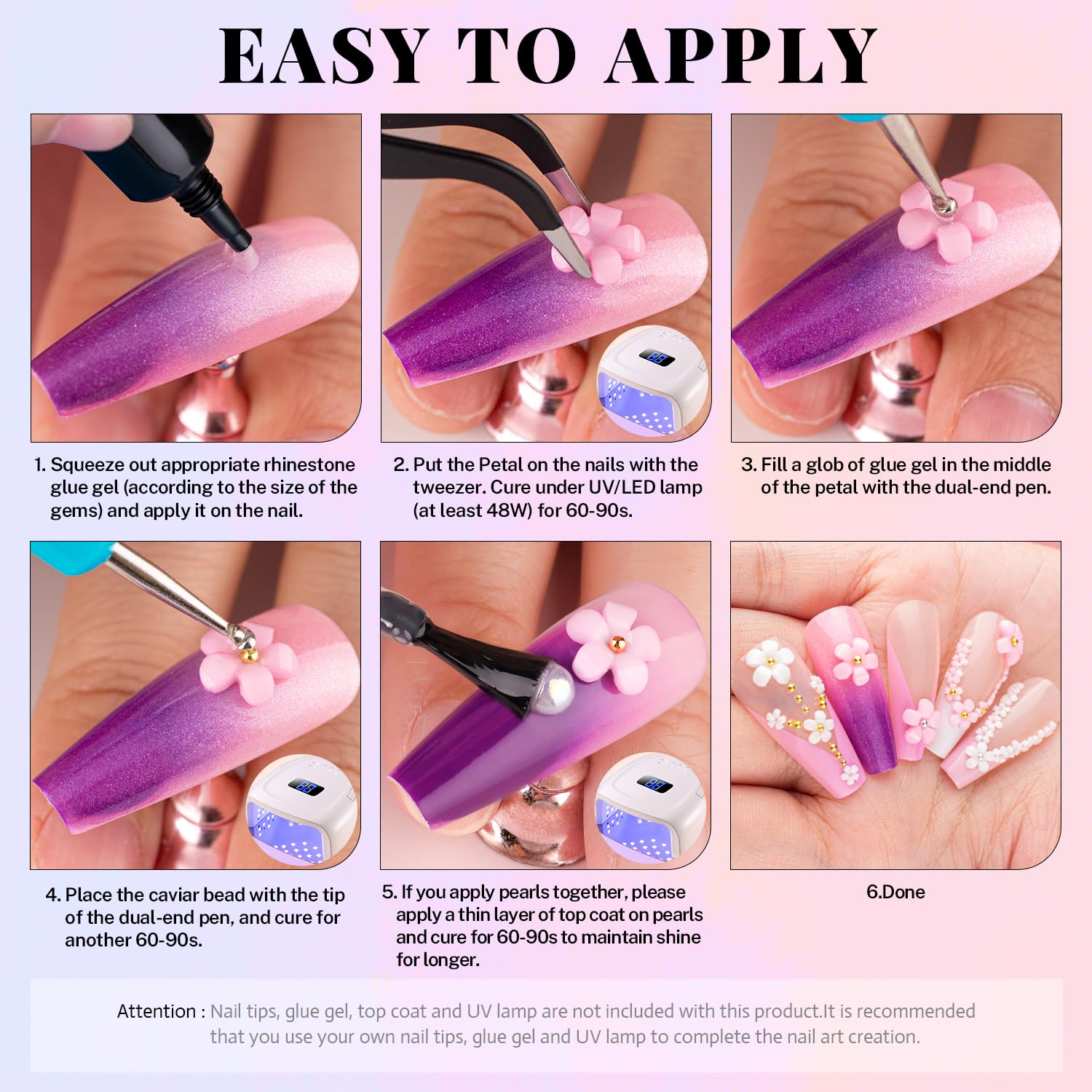 - đRHINESTONE DOTTING PICKER TOOLS -- The wide-head brush end of the dual-end dotting tool makes it easy to apply a large amount of glue to the nail surface at once, while the other mini dotting end is great for detailed drawing. Picker pen can help you handily pick up small flowers and metal beads, while tweezer is a better choice for big flowers and charms. The craftbeads are not self-adhesive and glue-needed. (Glue is not included.)