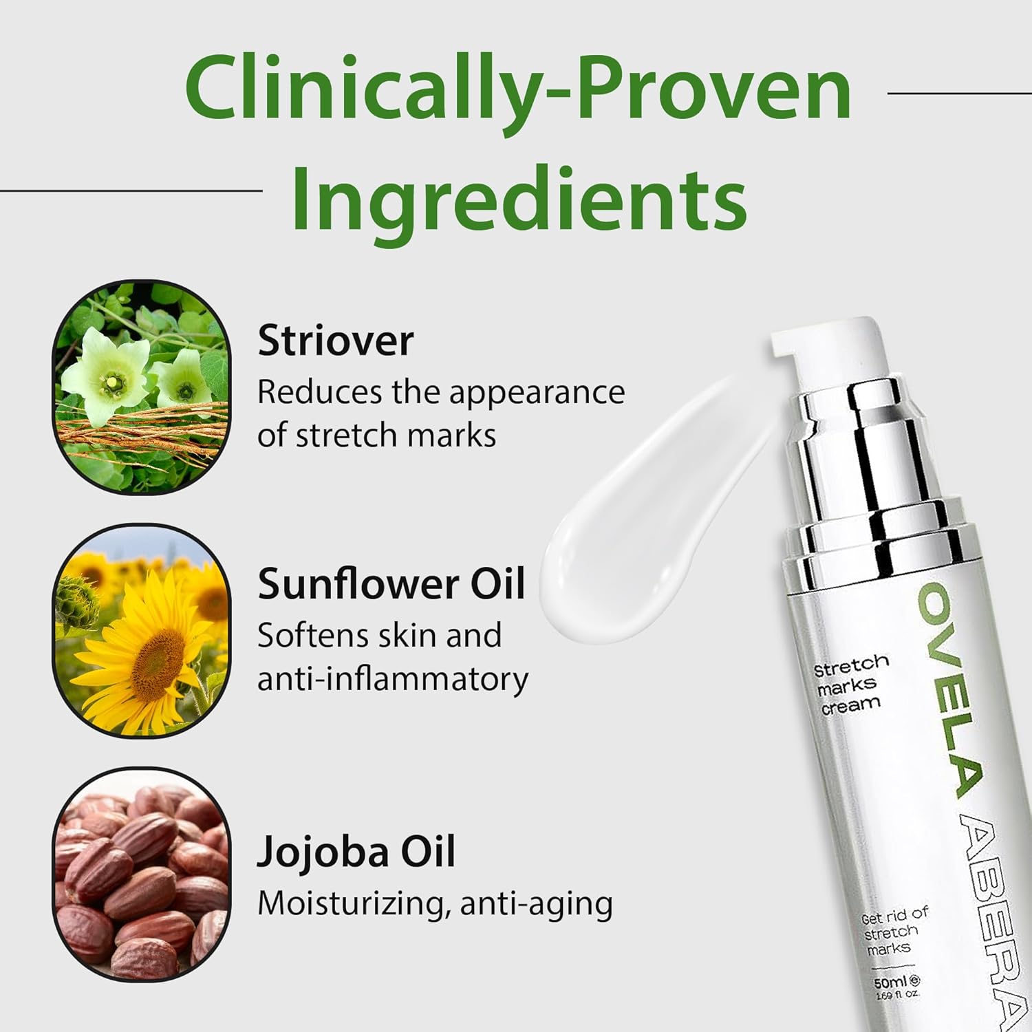 Abera Ovela Maternity Stretch Mark Cream for Pregnancy and Weight Fluctuations, Stretch Mark Treatment Pregnancy Must Haves, Deep Stretch Mark Removal, All Skin Types, 1.69 fl oz, Set of 2