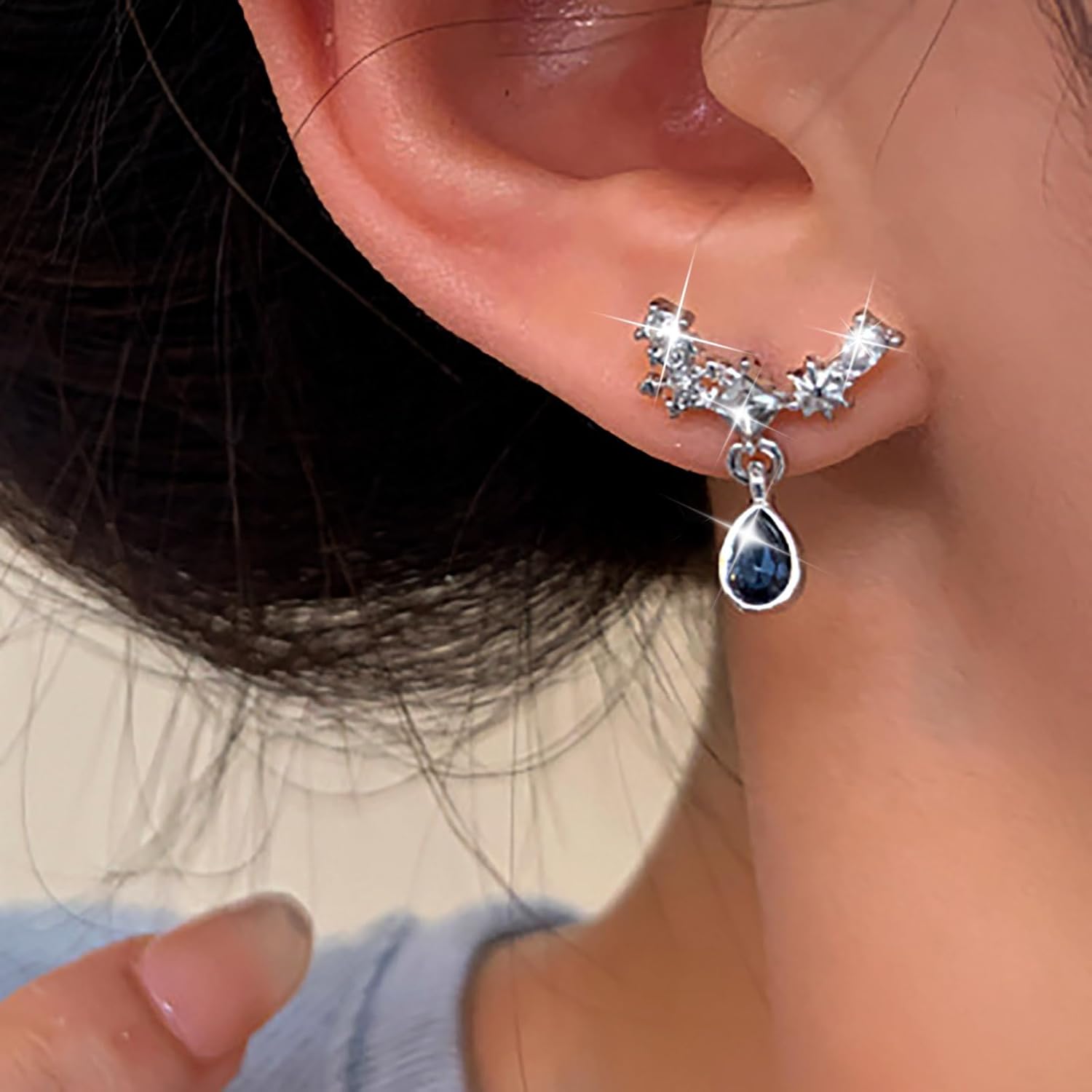 Vintage Teardrop Sapphire Earrings Crystal Climber Earrings Blue Sapphire Dangle Earrings Silver Sparkly Cz Rhinestone Earrings Jewelry for Women