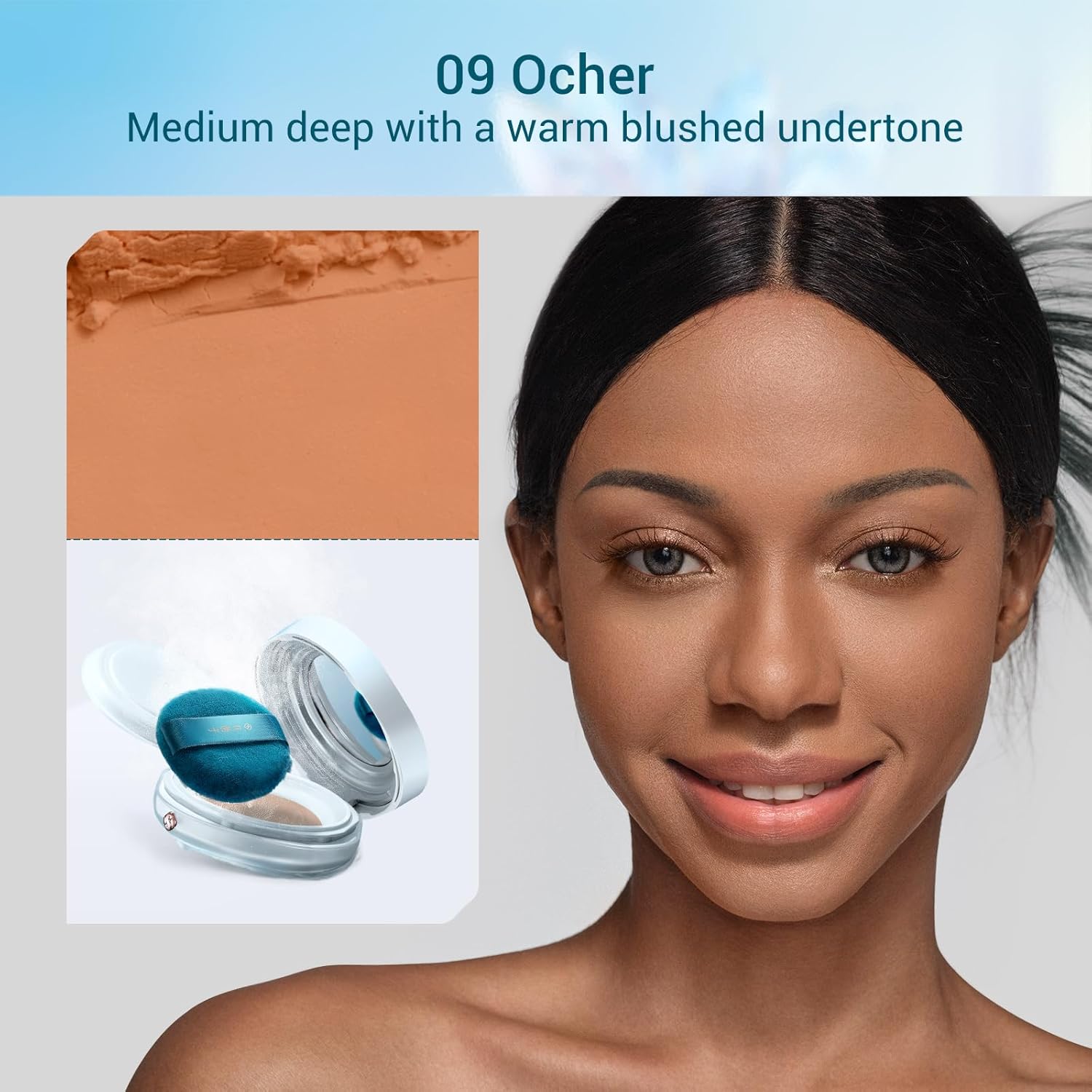 FLORASIS Breathable Loose Setting Powder, Flawless Jade Lightweight Long-Lasting Makeup Powder for Face (09 Ocher)