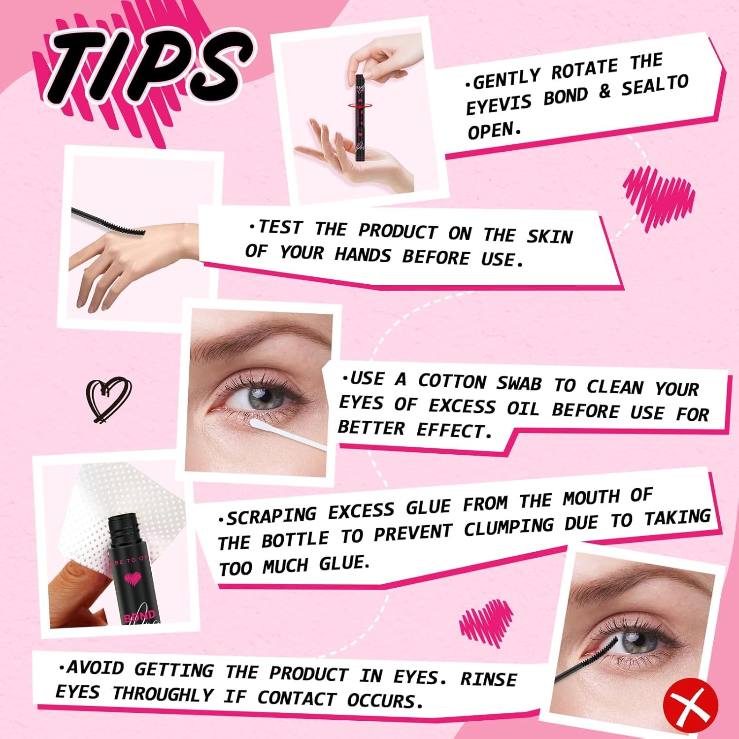 - Bond and seal without effort: Clear step instructions are listed on the tube. What you need to do is follow the instruction and enjoy your DIY eyelash-extension-like lash set!