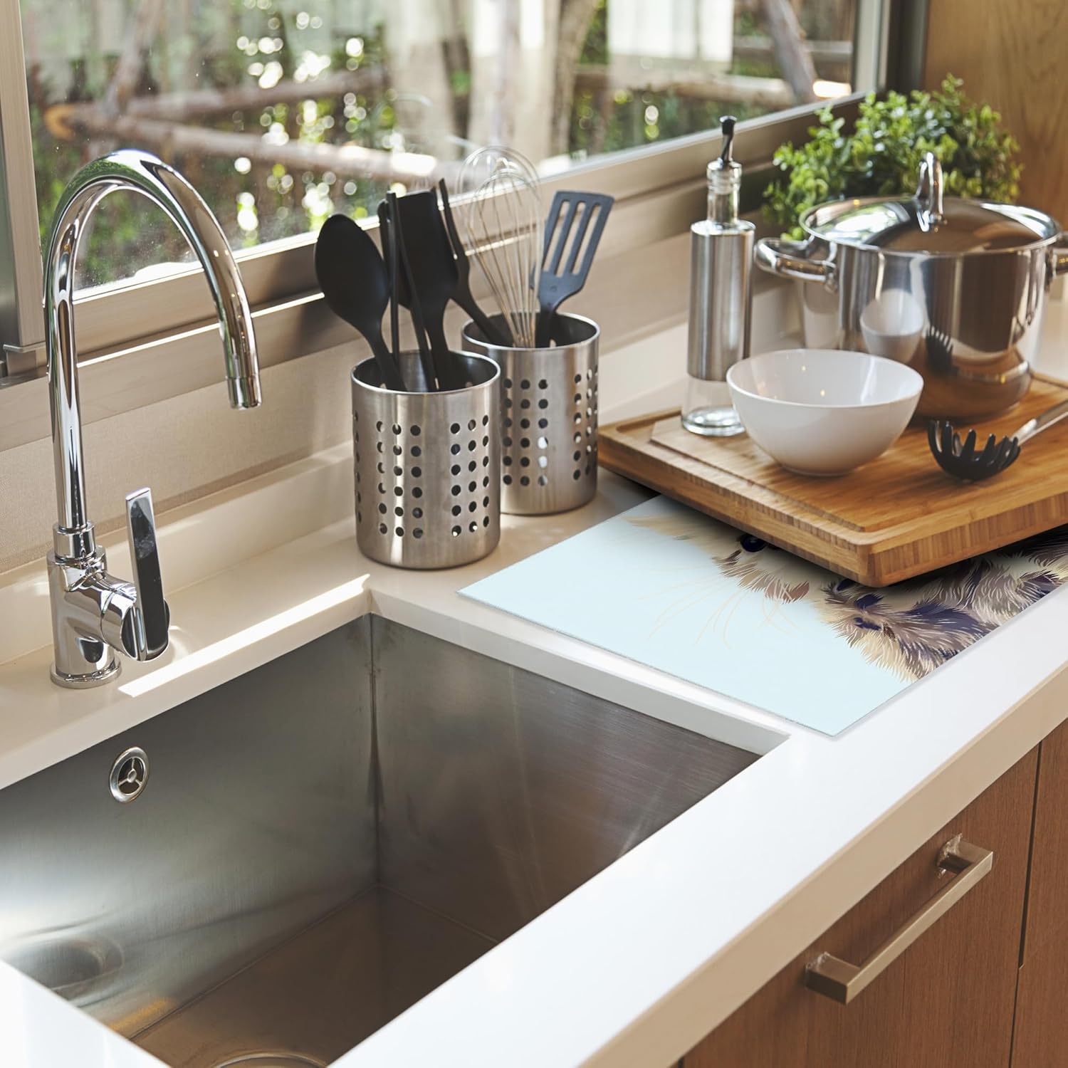 - MULTI-FUNCTIONAL: You can let it catches drips under a dish drying rack to keep the counter dry and clean, or you can place bottles, pots, pans, plates, bowls, cups, knives, silverware, serve ware, glassware, stemware, tableware and so on directly on the mat.