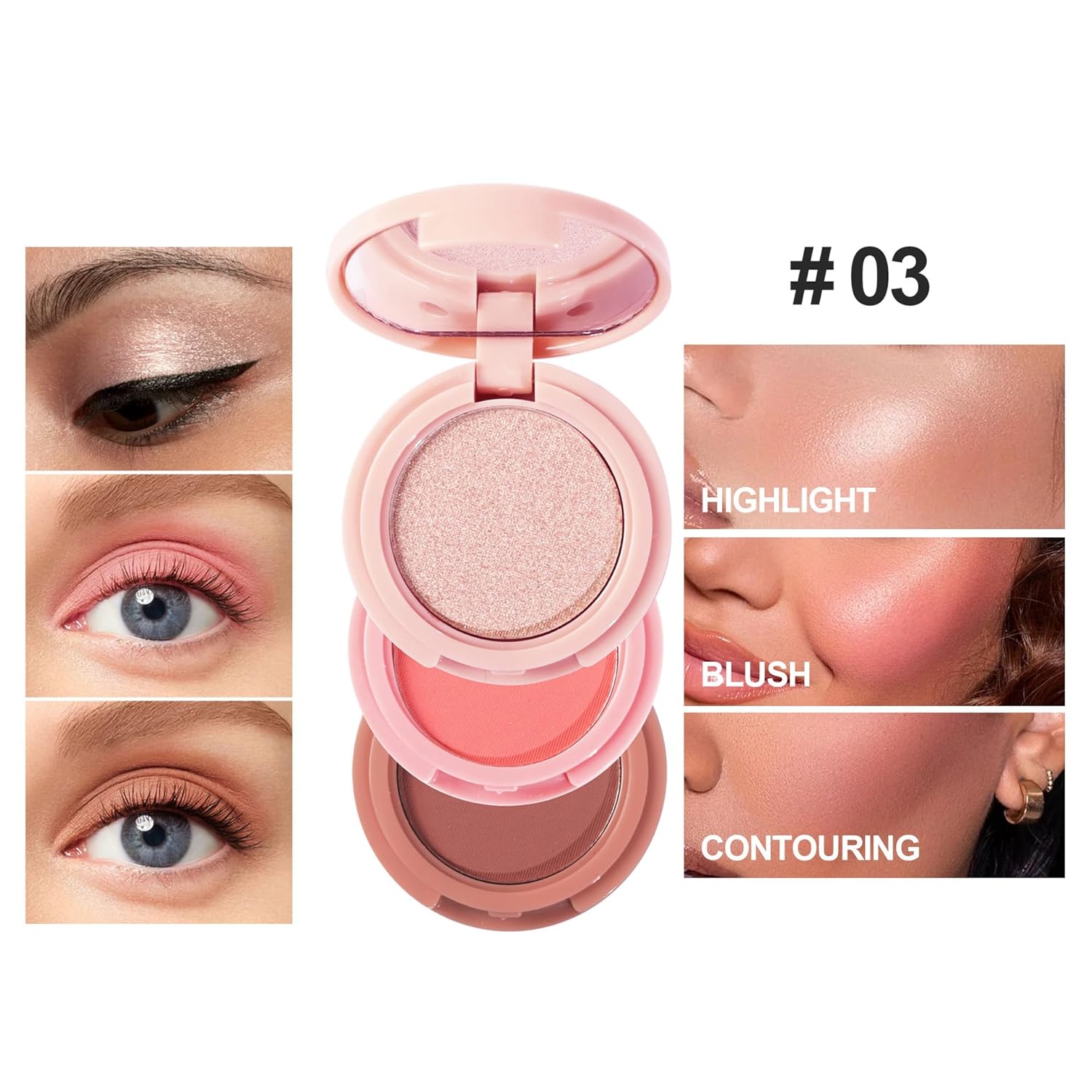 - Innovative super-affordable stackable eyeshadow/highlight/blush open and close with a satisfying snap.