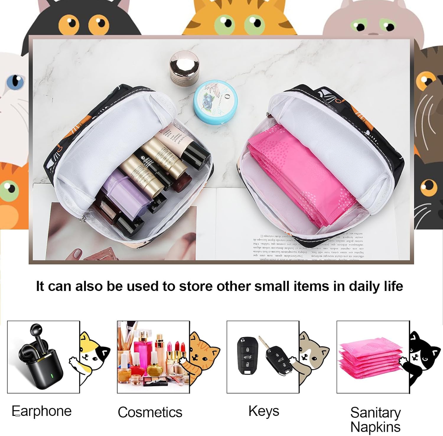 - Sanitary Pouch for Women: The small period pouch is a multifunctional bag for feminine product pouch items, not only for sanitary napkins, but also for feminine menstruation pad holder, menstrual tampon pouches, small cosmetics.