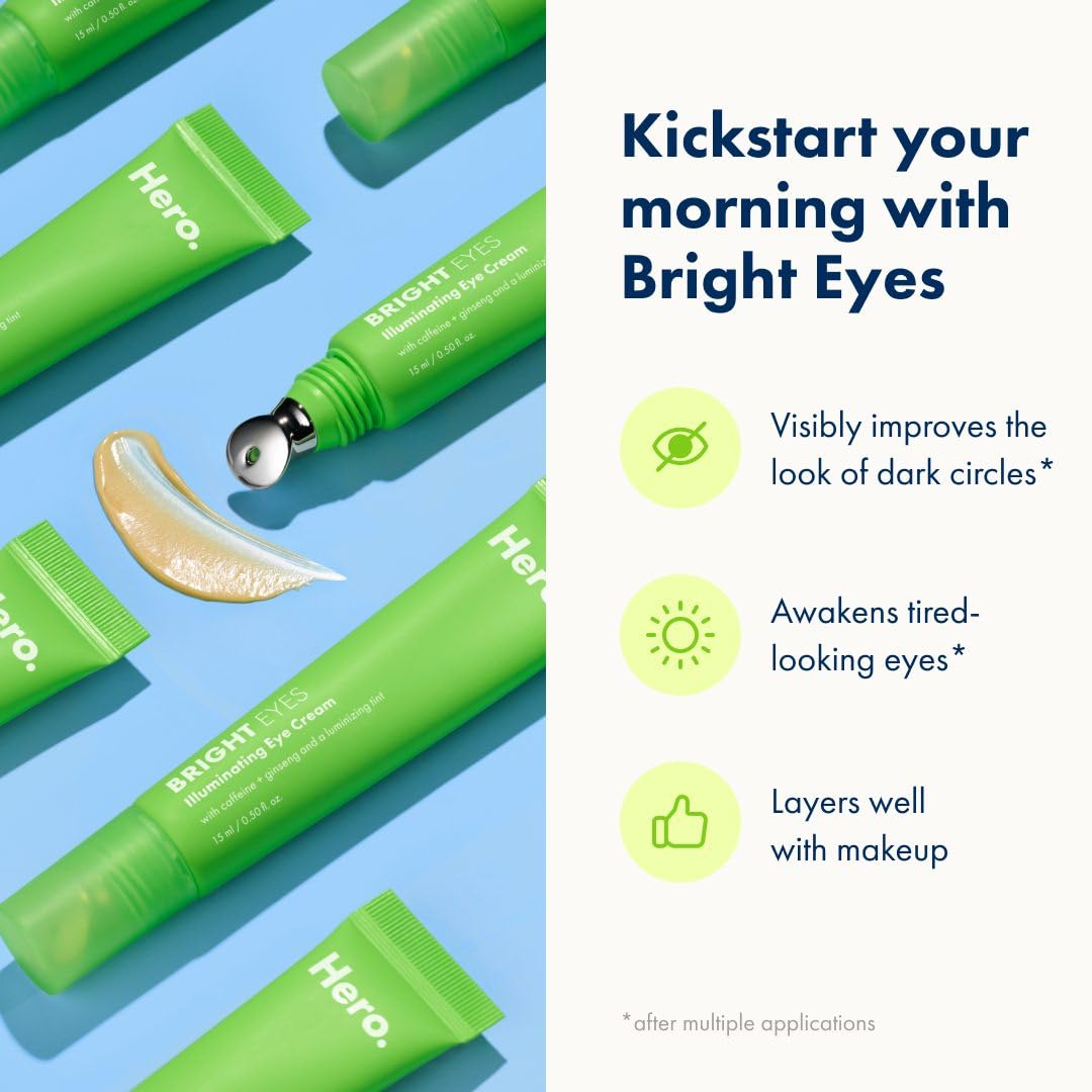 Hero Cosmetics Bright Eyes Illuminating Eye Cream - Reduces the Look of Dark Circles With Multiple Applications - Featuring a Stainless Steel Tip for a Cooling Effect (0.5 fl oz)