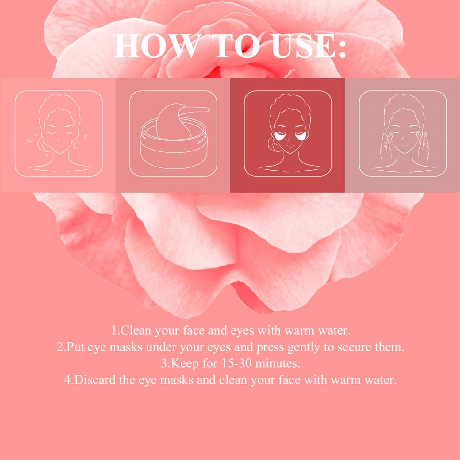 - [Rose Under Eye Mask]-Rich in ROSA RUGOSA FLOWER WATER, it can provide nutrients for the skin, improve dark circles, make the skin smooth and shiny.
