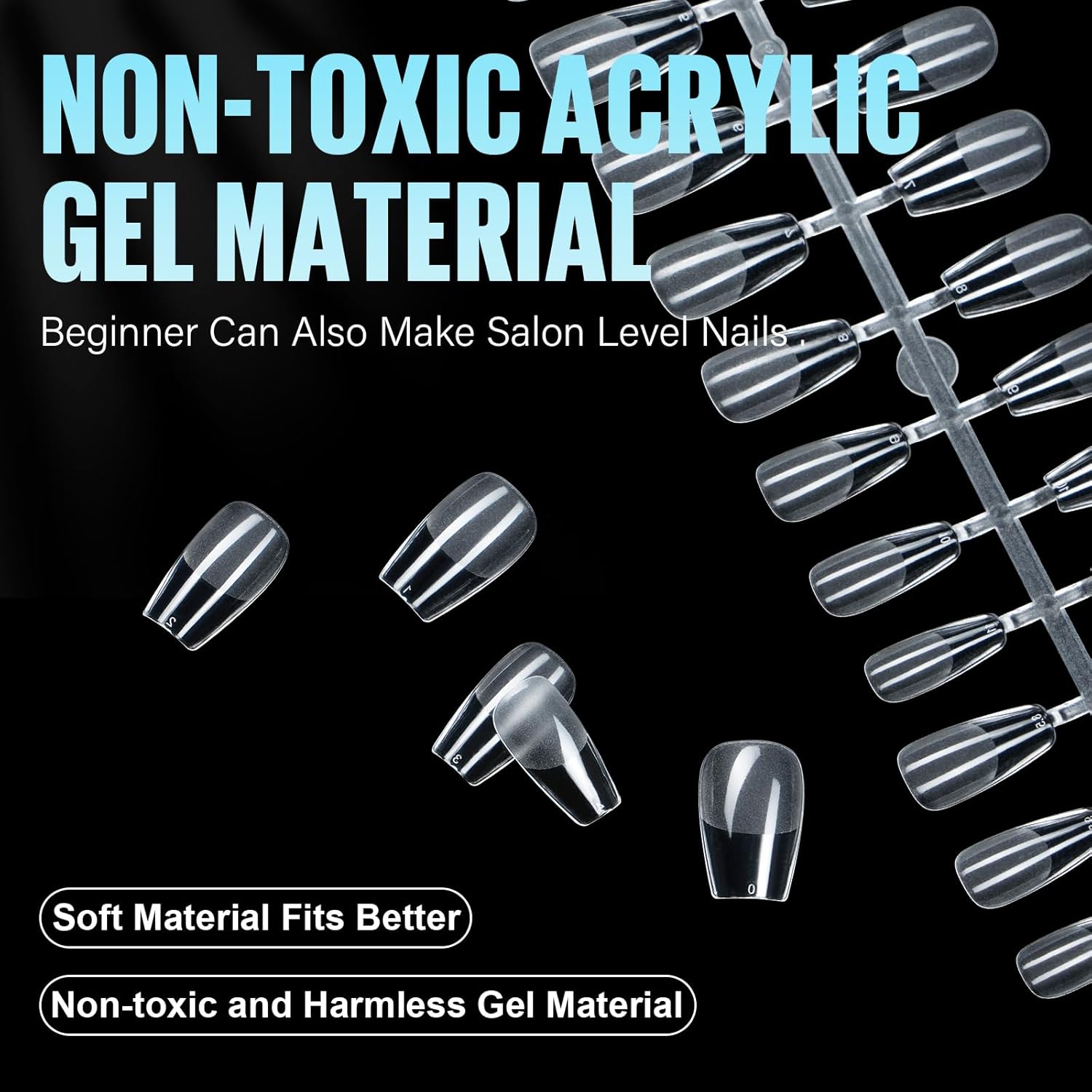 - Medium Coffin Tips with a Traceless Finish: Our gel nail tips are exceptionally flexible, leaving no trace, even when bent. Their clarity and brightness make it easier to shape, trim, and paint these false nails, allowing you to achieve your dream nail shape. Experience the real DIY manicure with our gel tips.