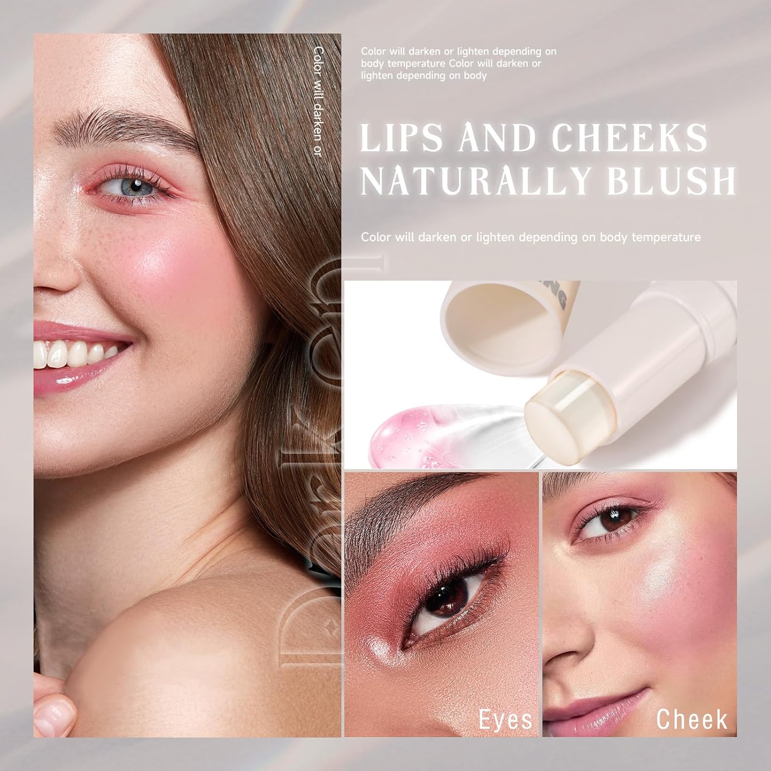 - 【2PCS Color Changing Jelly Blush Stick】These 2pcs face stick is color changing,which can be used on eyes, cheeks and lips. Whether you want to make eyeshadow, blush, or lip color, it can help.The cream blush stick is delicate and smooth, giving you a natural makeup. It can add a natural luster to your skin tone.