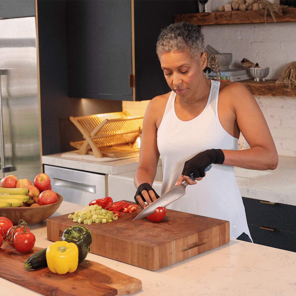 - AVAILABLE IN 5 SIZES. These gloves are available in XS, S, M, L and XL. To select the correct size, measure the circumference of your hand above the thumb. Select the size that best fits your measurements according to our sizing chart. If you fall between sizes, size up to ensure a proper fit. Great for men and women of all ages. Even children with sensory issues can benefit from compression support.