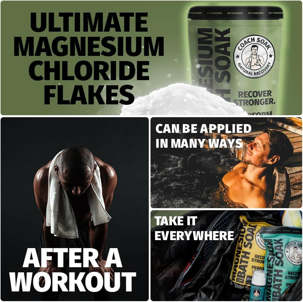 - Coach Soak's Magnesium Lotion, designed for athletes, offers quick absorption directly onto the skin. Experience the benefits of magnesium chloride with a menthol sensation. Same quality, new packaging! Your purchase includes a copy of our ebook "How Magnesium Aids Post-Workout Recovery".