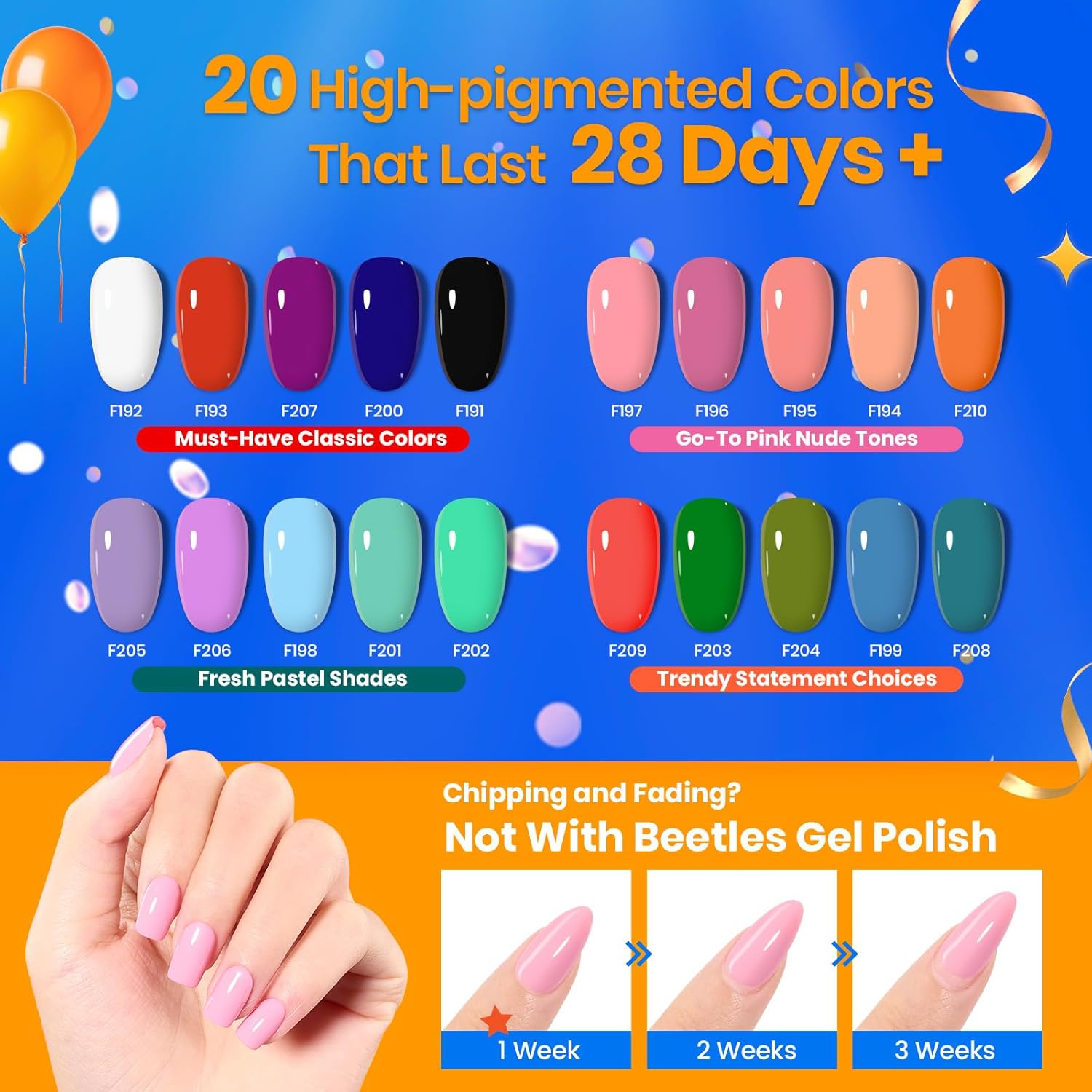 - Ideal Gift For Girl&Women ďźIf you are looking for birthday, anniversary, Valentines Day, Christmass Day gifts for your family or friends, the beetles gel nail kit will be a good choice.Warm Notice : Nail gel polish has different color differences in different light sources, displays and coatings.When you encounter any problems, please feel free to contact us.