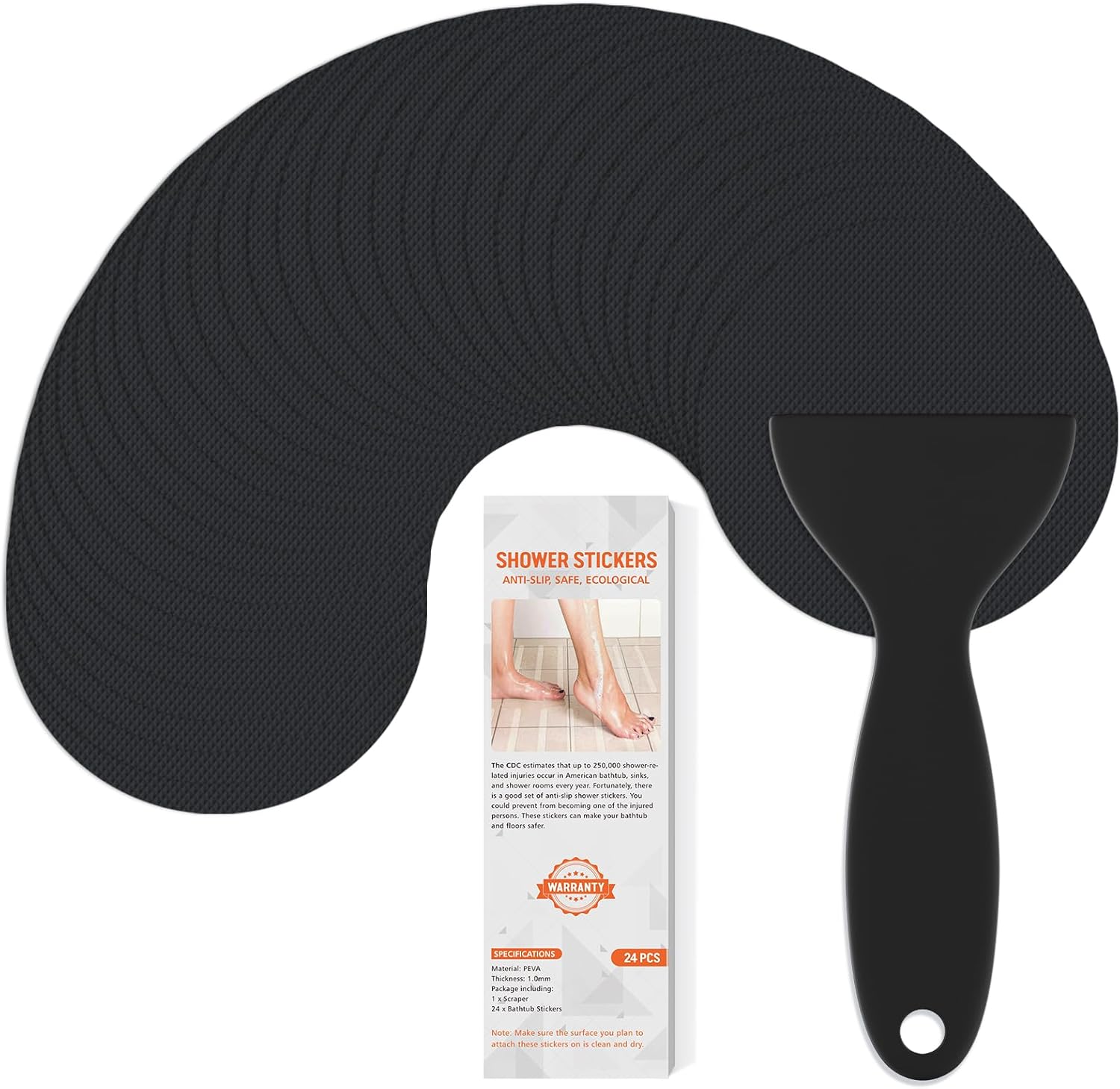 Non Slip Bathtub Stickers, 24 PCS Shower Stickers for Safety Bathroom Tubs, Bathtub Non Slip Stickers and Adhesive Decals Scraper for Bath Tub, Shower Floor, Stairs, Ladders(Round Shape,Black)