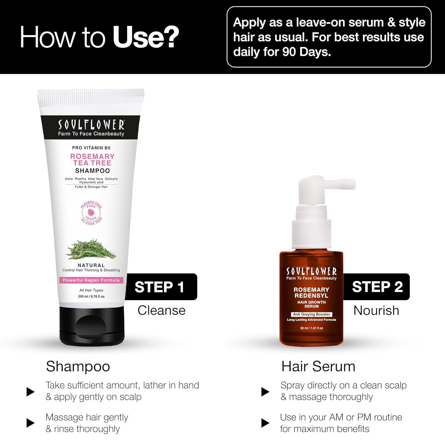 - HELPS TO REDUCE HAIR LOSS: The most essential part of your hair growth journey. This lightweight, non-greasy, non-oily, Rosemary Redensyl serum helps in concerns like slow hair growth, hair loss, thinning & uneven shedding.