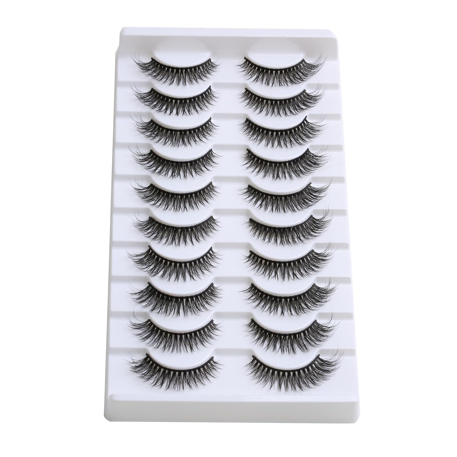 SUNWELL False Eyelashes 12mm Mink Lashes Natural Look Cat Eye Faux Mink Lashes 3D Fluffy Soft Luxury Volume Fake Lashes 10 Pairs Pack