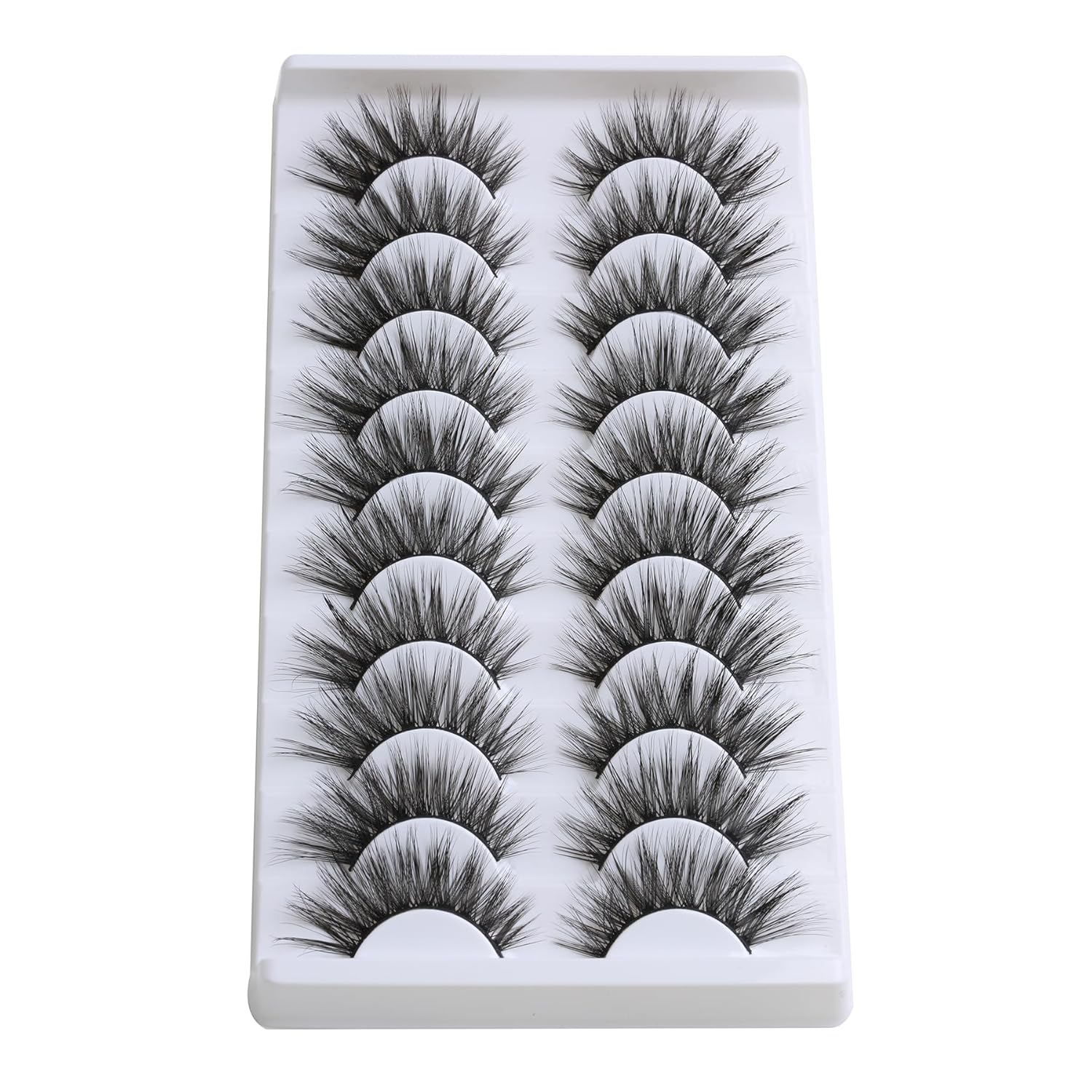 SUNWELL False Eyelashes 16mm Mink Lashes Cat Eye Faux Mink Lashes 8D Fluffy Strip Lashes Soft Wispy Luxury Volume Fake Eyelashes 10 Pairs Pack